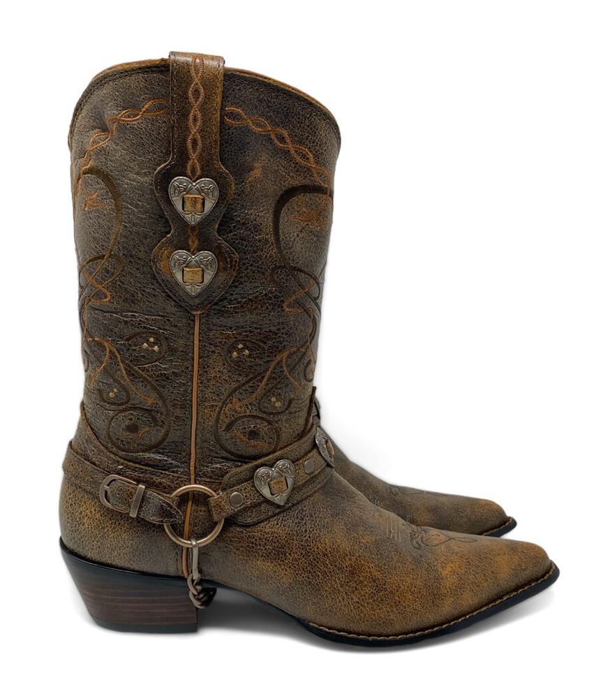 Accents: Embroidered, Buckle gtin13: 0883802222258 Type: Boot Style: Western Features: Buckle, Heart Concho UK Shoe Size: 8 Heel Style: Block Character: Boots Brand: Durango MPN: P109992 Upper Material: Leather Department: Women Shoe Shaft Style: Mid-Calf Season: Fall, Spring, Summer, Winter Color: Brown Shoe Width: M Closure: Slip On Country/Region of Manufacture: China US Shoe Size: 10 Model: Durango Crush UPC: 0883802222258 Theme: Cowboy EU Shoe Size: 42 Toe Shape: Pointed Toe Heel Height: Med (1 3/4 in. to 2 3/4 in.)