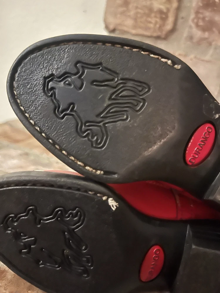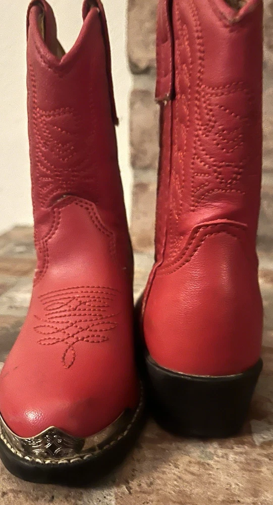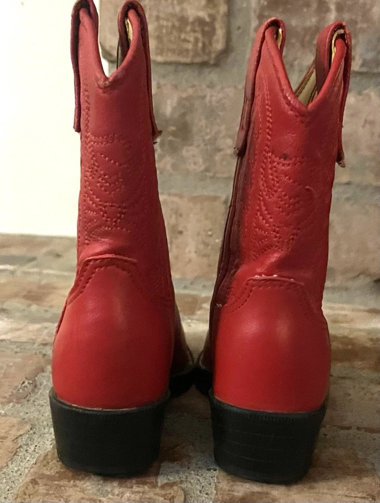 The Durango Youth Size 3.5 Red Girls Baby Cowgirl Boots in toddler size are stylish Western boots perfect for casual occasions. These square toe boots feature a pull-on closure, low heel, and embroidered accents. With comfort features like cushioning and a rubber outsole, these boots are ideal for summer, fall, and spring seasons. Made with leather upper material and a foam insole, these mid-calf boots are a great addition to any young cowgirl's wardrobe. Perfect for rodeos or just everyday play, these Durango boots are a durable and fashionable choice for any little one.