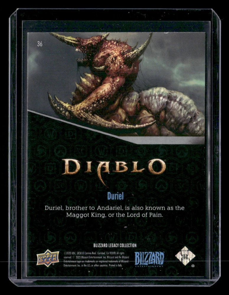 Wacicha's Trading Post Upperdeck Blizzard Card Duriel 2023 Upper Deck Blizzard Legacy Collection #36 All Orders under $20 are shipped in a cardboard Photo Mailer with Tracking Provided by EBAY Standard Envelope. Cards are scanned front and back. Please use the Zoom to make your own determination of condition. Descriptions in the title are for information only. Please note that scanned images may not pick up the exact tones/hues of the original item. REFER TO PHOTOS FOR DETAILS AND USE ZOOM FEATURE