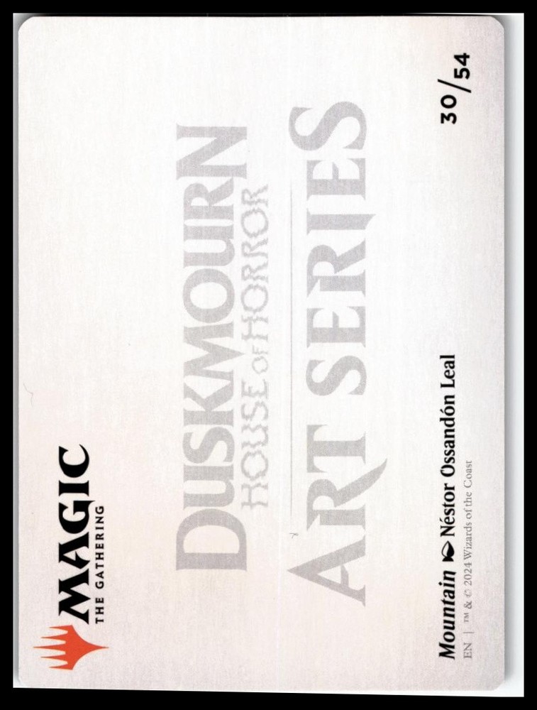 brand:Wizards of the CoastCard Number:30Language:EnglishFinish:RegularSet:Art Series: Duskmourn: House of HorrorIllustrator:Nestor Ossandon LealRarity:SpecialManufacturer:Wizards of the CoastAdditional Description:Mountain Art CardGame:Magic: The GatheringFeatures:BorderlessCard Name:Mountain Art Card