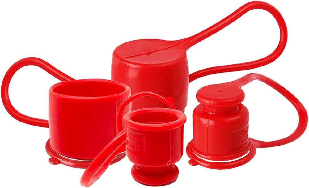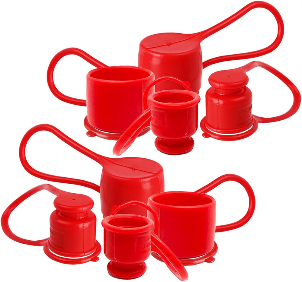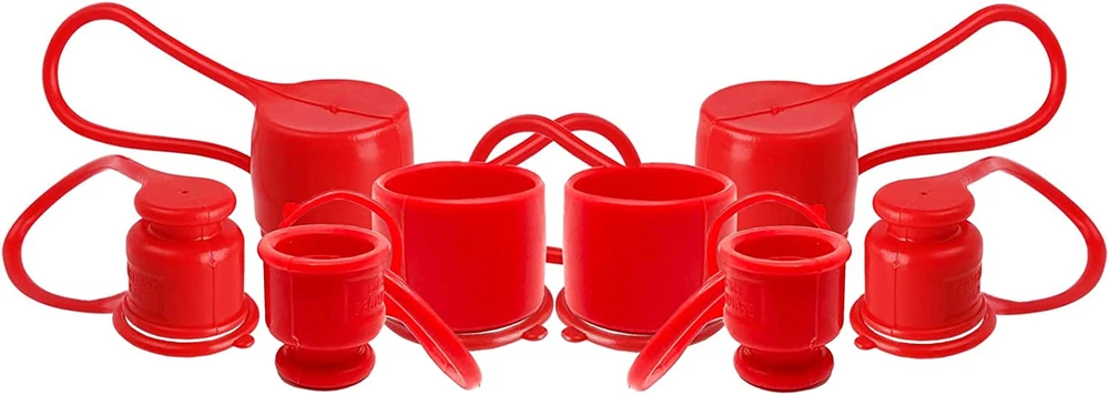 4 sets hydraulic dust caps/plugs: 4 Male Dust Cap + 4 Female Dust Cap Hydraulic dust caps keeps dirt out of 1/2" skid steer bobcat flat face hydraulic coupler fittings and protects hydraulic system from the elements Fits perfect for 1/2" body flat face quick couplers,for most skid steer loaders and attachments, Bobcat hydraulic connector fittings. Fitment: For hydraulic coupler Body Size--1/2”, For Female Couplers Diameter---1.50”, Male Couplers Diameter---0.96” The hydraulic fitting dust caps covers fits for Dixon HT,Tomco FE,Snap Tite 74,Stucchi FIRG,Safeway FFE49,Parker FE Faster FFH,DNP PLT4,Eaton Aeroquip FD89 and many other pneumatic couplings. 1/2" Skid Steer Bobcat Flat Face Hydraulic Coupler Dust Caps/Plugs Covers Keep your hydraulic couplers fittings clean and protect hydraulic system from the elements Fitment: 1/2" body flat face quick couplers 1.5” diameter female couplers 0.96” diameter male couplers For most skid steer attachments, Bobcat hydraulic connectors fittings Such As Dixon HT,Tomco FE,Snap Tite 74,Stucchi FIRG,Safeway FFE49,Parker FE Faster FFH,DNP PLT4,Eaton Aeroquip FD89 and many other pneumatic couplings Package includes: 4 Male Dust Cap 4 Female Dust Cap