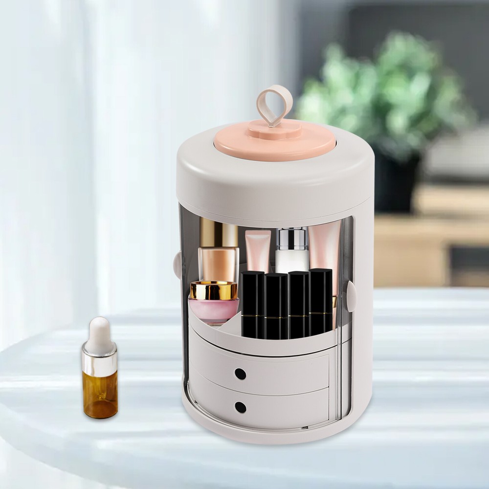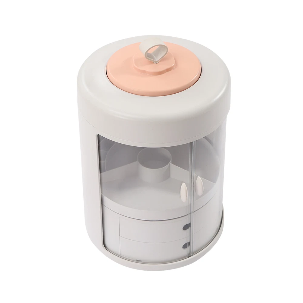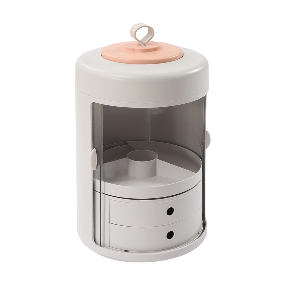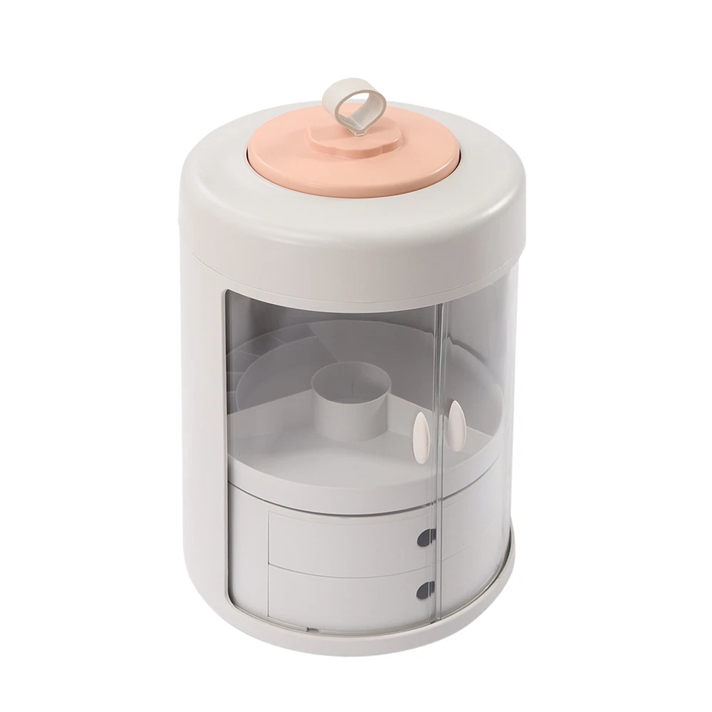 Dust-Proof Makeup Organiser 360° Rotating Cosmetic Storage Box with 2 Drawers Application It is suitable for use on the dressing table, bedroom, bathroom, bedside table, or living room to place your various cosmetics, such as water lotion, sunscreen, blocking cream, jewelry, lipstick, foundation, makeup brushes, eyeliners, eye shadow, nail polish, perfume, and other cosmetics. Specification Color: Pink Style: Modern Mounting Type: Tabletop, Freestanding Number of Compartments: 4 Material: ABS+PC Gross Weight: 2.9kg/6.4lbs Net Weight: 2.6kg/5.73lbs Product Size: 24.5*40cm/9.6*15.7inch Package Size: 44.5*29*29cm/17.52*11.42*11.42inch Package Included 1 * Makeup Organiser Description The beauty of a girl certainly can not be treated lightly! Your beauty and the cleanliness of your dressing table are guarded by us. A good makeup organizer can make your charm bloom unconsciously. Our makeup organizer has four layers that can hold a lot of cosmetics. With it, your room will be tidier and more beautiful. Let's say goodbye to the cluttered dressing table and start making changes now! Key Features High-quality Material: The material of this makeup organizer is hard and durable ABS and PS, which will not be easily deformed or damaged. So it has a long service life. Keep Tidy&Organized: It takes up a small desktop area, which makes good use of the vertical space to store all kinds of cosmetics and skincare products neatly and it would be a great addition to your bedroom, bathroom, counter, dresser, and vanity to keep them a lot neater looking. Beautiful Appearance: The round and double door design of this product make it very beautiful. The overall cylindrical design and the crystal clear lid give this product a romantic and luxurious look. Large Capacity: With four layers of storage space, it can hold up to 8 bottles of toner and lotion, 3 essentials, 5 lipsticks, 10 masks, and more. This large capacity will meet your daily storage needs. Thoughtful Helper: The makeup organizer features a thoughtful zoning design, so you can place products with different functions in the appropriate areas. The compartmentalized design not only makes full use of the space in the cosmetic case but also makes it easy to access. 360° Rotating Design: This product is equipped with a 360-degree rotating chassis. You only need to move your fingertips to rotate flexibly, and it is more convenient to pick up items. And the chassis has steel balls at the bottom to make the rotation smoother. Considerate Design: The design of transparent double-sided door allows you to directly see the storage location of cosmetics and open the organizer from both sides, which is convenient and time-saving. Dustproof Design: It adopts a dustproof cover and a closed drawer, which can effectively protect your cosmetics from water and dust. Easy to Carry: This makeup organizer is compact, lightweight(5.73lbs), and has a silicone carry handle on top, making it easy to carry. Wonderful Gift: The beautiful appearance and simple design make it a great gift. You can give it to your family members, colleagues, or friends to enhance their relationship with each other. Easy to Clean: The surface of this makeup organizer box is smooth and flat, which is easy to clean. You just need to wipe it with a wet rag. Installation-free : The makeup organizer you receive is already installed, you can get it and start using it right away. Protective Shipping: In order to prevent the product from being damaged and bumped during transportation, we fill the package with anti-collision protection foam to protect your products to the maximum extent possible. Details Pull-out Drawers: The bottom two drawers can be pulled out completely, if the drawers are dirty, you can easily clean them. You can also easily access the items placed in the back. Rounded Corners: The product's corners are rounded, which can prevent your hands from being scratched and makes it very safe to use. Multifunctional Box: The top of the makeup organizer has a removable box that you can use to carry small samples of your skincare products when you are on the go. And you can fix it to the makeup organizer by turning it to the right. Enough Height: The top layer of this makeup organizer has a heightened design, which can easily accommodate tall bottles and solve your troubles of not being able to put your cosmetics. Notes Please pay attention to avoiding the makeup case from being scratched by sharp objects, or hit by heavy objects. Please avoid exposing it to the sun for a long time. Please allow the slight color difference caused by the shooting light and 1-3 cm error due to manual measurement, and make sure you do not mind before ordering. Payment Delivery details Terms of sales About us Contact us Payment We accept ebay payment 。 Fees such as import duties, taxes are not included in the item price or shipping costs. These charges are the buyer's responsibility. Delivery details Shipping: 2-9 working days to: USA Terms of sales We maintain high standards of excellence and strive for hundred percent customer satisfaction. Feedback is very important to us. We hope that you contact us immediately before you give neutral or negative feedback, so that we can address your concerns. It is impossible to address issues if we do not know about them! About us Your satis faction is our ultimate goal. We work hard to earn your trust and future business. Our certified technicians have tested each item before shipping. The unit comes with 1 year limited warranty on all manufacturing defects. a) If you receive a defective item, you may return it or ask for a discount. Please contact us within 14 days after you receive the package. b) What you returned must be intact and in its original packaging as re? u. Customer is responsible for shipping costs of the returned item. c) We will cover the cost of shipping back t with the shipping rate indicated in the registration page. We will send you a new unit or refund 