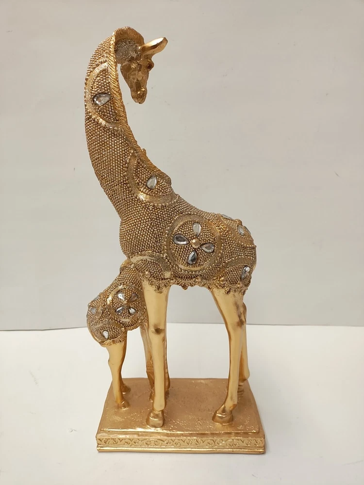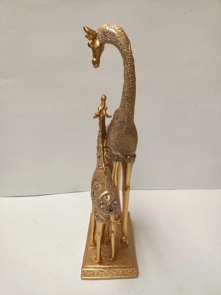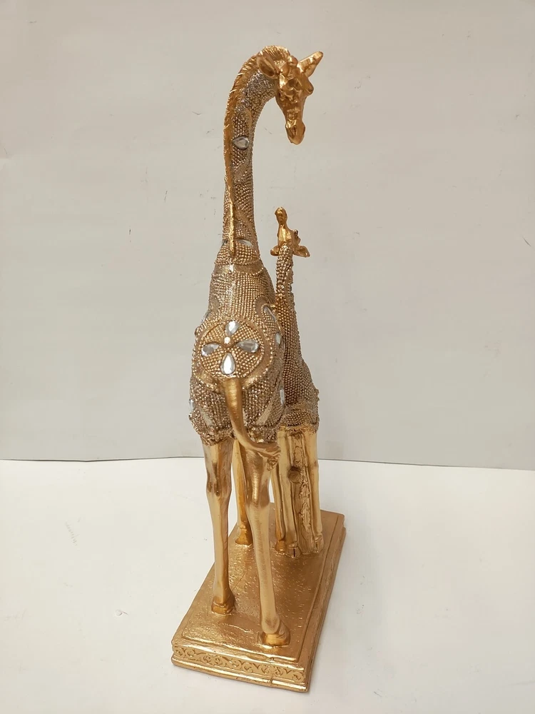 Dynasty Gift Inc 15" Mom And Son Giraffe Statue Decorative Figurine QMH10985-48 Bring the beauty and grace of the wild into your home with the stunning Mom And Son Giraffe Statue. Crafted from durable polyresin for long-lasting display Elegant gold finish adds a touch of sophistication Measures a generous 15 inches tall Depicts a mother giraffe and her calf in a heartwarming pose This breathtaking giraffe statue is more than just a decorative piece - it's a symbol of the unbreakable bond between a mother and child. The intricate details and lifelike design will transport you to the serene savannas of Africa, evoking a sense of wonder and natural beauty in any space. Whether displayed on a shelf, table, or mantel, this majestic figurine is sure to become the centerpiece of your home decor. The Mom And Son Giraffe Statue makes a thoughtful gift for new moms, animal lovers, or anyone who appreciates the majesty of the natural world. Its timeless appeal and stunning craftsmanship will be cherished for years to come.