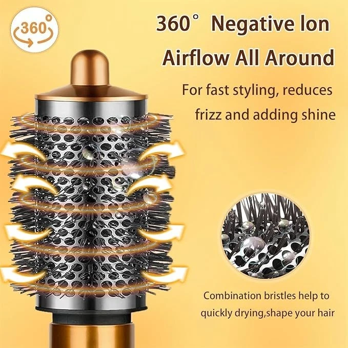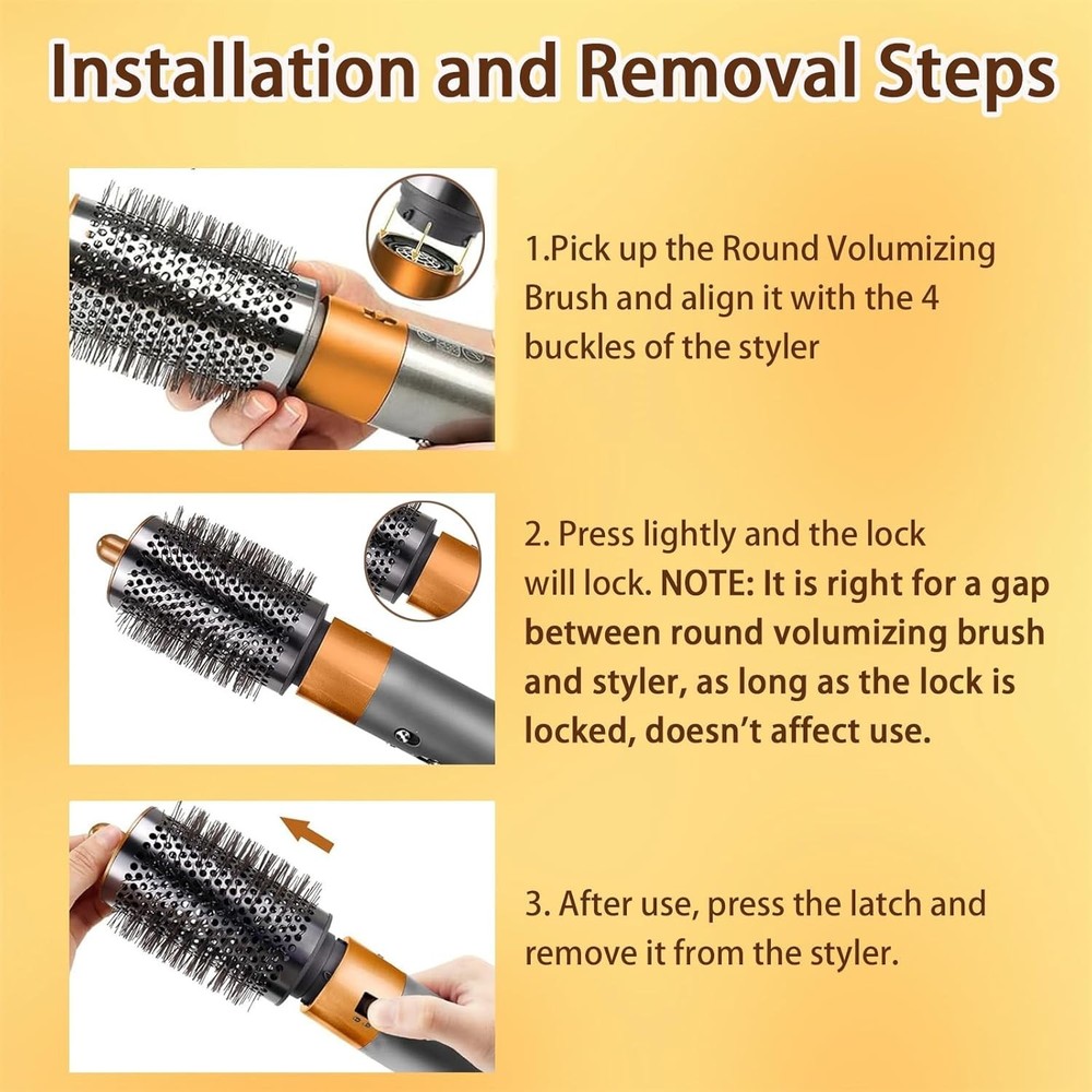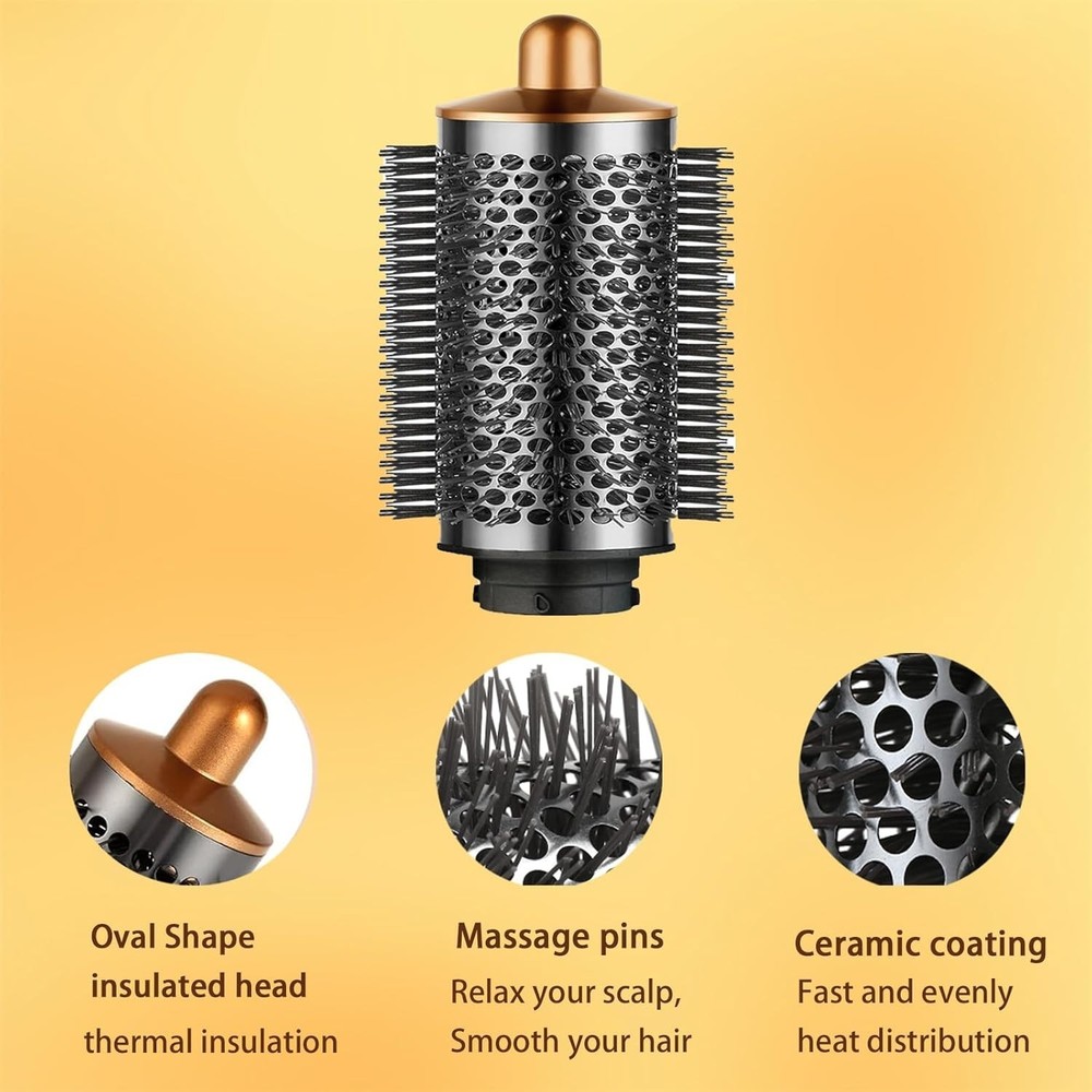 FREE SHIPPING Large Round Volumizing Brush for Dyson Airwrap Attachments Bigger Round Brush Attachment for Dyson Air Wrap Styler, Fluff up and Volumize for Styling (Gold) About this item Large round volumizing brush compatible with dyson airwrap styler accessories, NOT FOR Dyson airwrap 2x. The round volumizing brush draws air into the hair, creating a voluminous effect. The comb teeth increase the volume, allowing for quicker hair drying. The round volumizing brush aids in achieving natural, stylish curls effortlessly. The comb teeth lift the roots while drying the hair, effortlessly achieving curly hairstyles. The round brush attachment is easy to install, high quality and durable. Packaged List: 1*The Large Round Volumizing Brush. Whether for yourself or for friends and family, this hair volumizer tool is an ideal gift choice for both daily styling and professional blow outs.