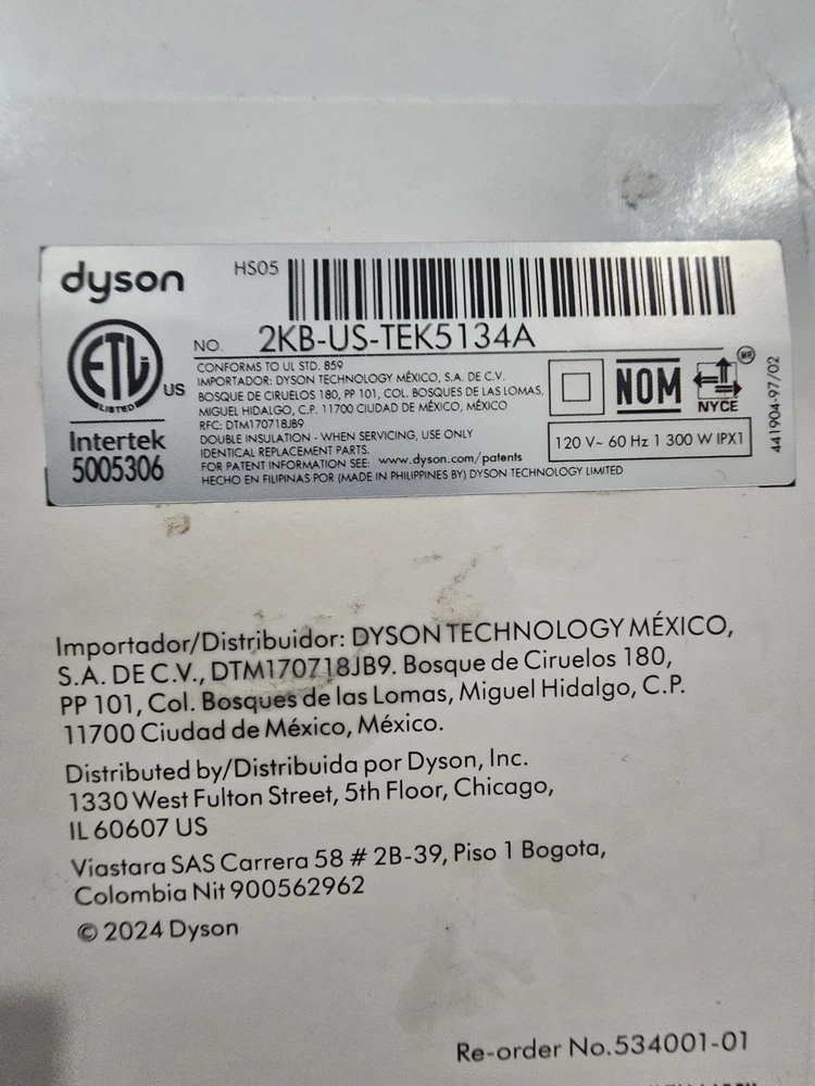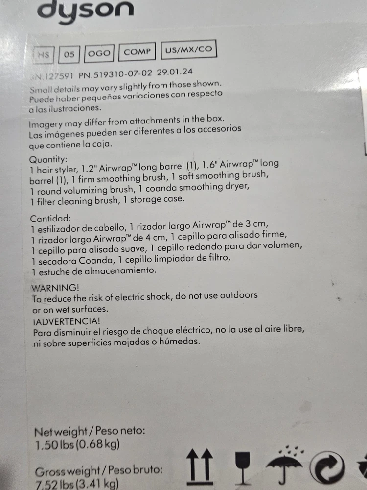 Dyson Airwrap Multi Styler Complete long (HS05) Color: Black with Gold Trim, Model/Batch ID: NO 2KB-US-TFJ5687A.