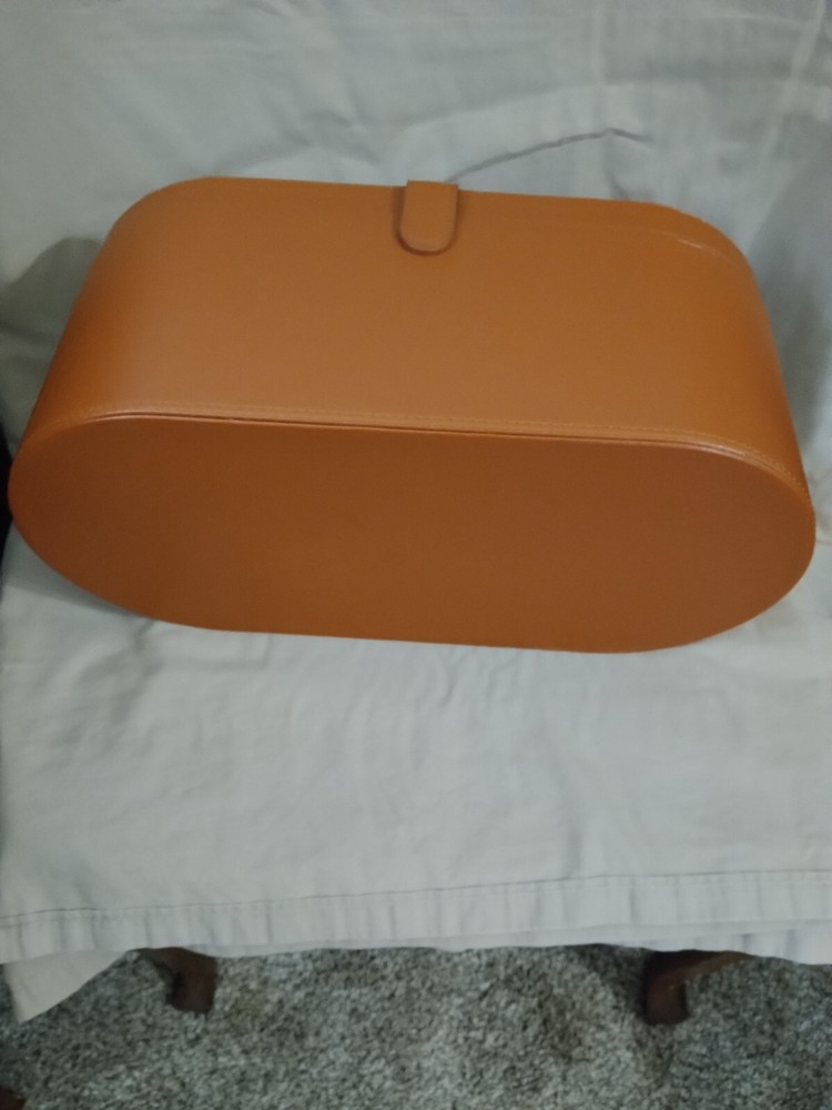 THIS IS A DYSON AIR WRAP STORAGE CASE IT IS LEATHER AND IN EXCELLENT CONDITION IT IS 14 INCHES LONG 7 INCHES WIDE 6 INCHES TALL MARKED DYSON ON THE TOP