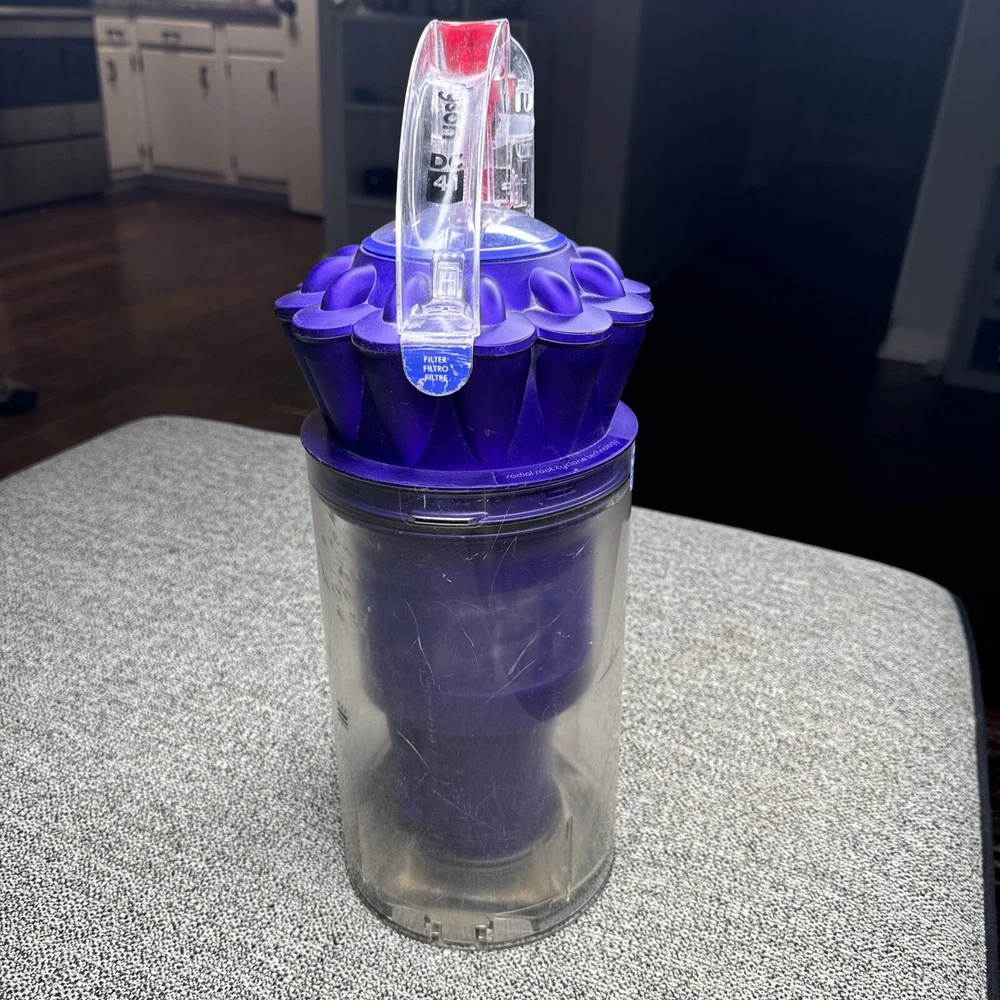 THIS IS A USED Dyson Ball PURPLE DC41 DC65 UP13 Vacuum Cleaner Dust Cup Bin Canister..ITEM HAS SCRATCHES,SCUFFS,MARKS,DUSTY NORMAL WEAR AND TEAR.