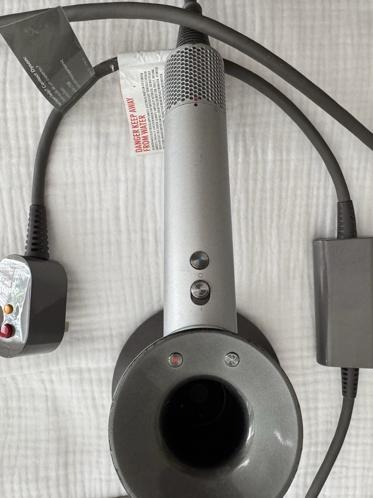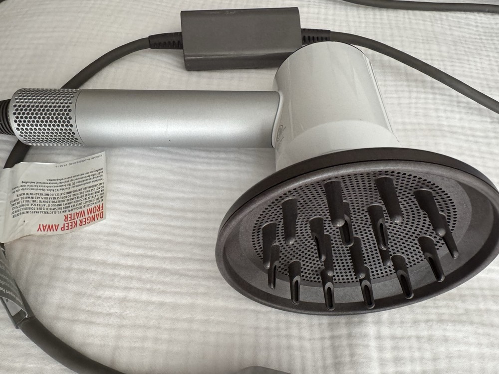 Dyson Supersonic Hair Dryer - White/Silver, HD01, Used. Works perfectly! It has some usual wear . I used the diffuser as i have curly hair. I’m a senior woman and not able to do my hair these days sadly. It’s a great price to try this top of the line hair dryer.