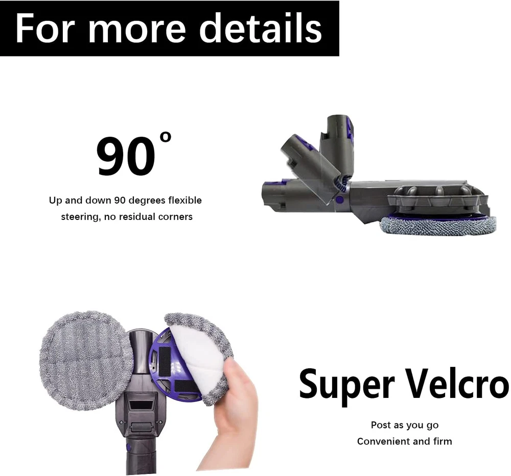 This Cleaner Head is perfectly compatible with Dyson vacuum cleaner V7 V8 V10 and V11 models. Also, It combines vacuuming and mopping to quickly clean daily messes. *This is only the cleaner head, not a vaccum* EFFICIENT CLEANING - The spinning mop allows to rotate 180°from left to right, and rotate 90°to stand and facilitate the mop. Easier to reach under and around furniture. It Can remove dirt from hard-to-reach places.The stains can no longer be hidden. SUITABLE FOR ALL SURFACES - The electric mop head attachment can work on various floor surfaces, including Vinyl, Tile, Hard Floor, Wood Floor, Marble. EASY TO INSTALL - This floor attachment is very easy to install, 4 microfiber and reusable replacement mop pads are provided for scrubbing and waxing.*Not With Water Tank* Just normal cleaner head. WARRANTY - We support good after sales service of the electric mop head attachment within the first 30 days without any problems. If you have any questions just freely to contact us.