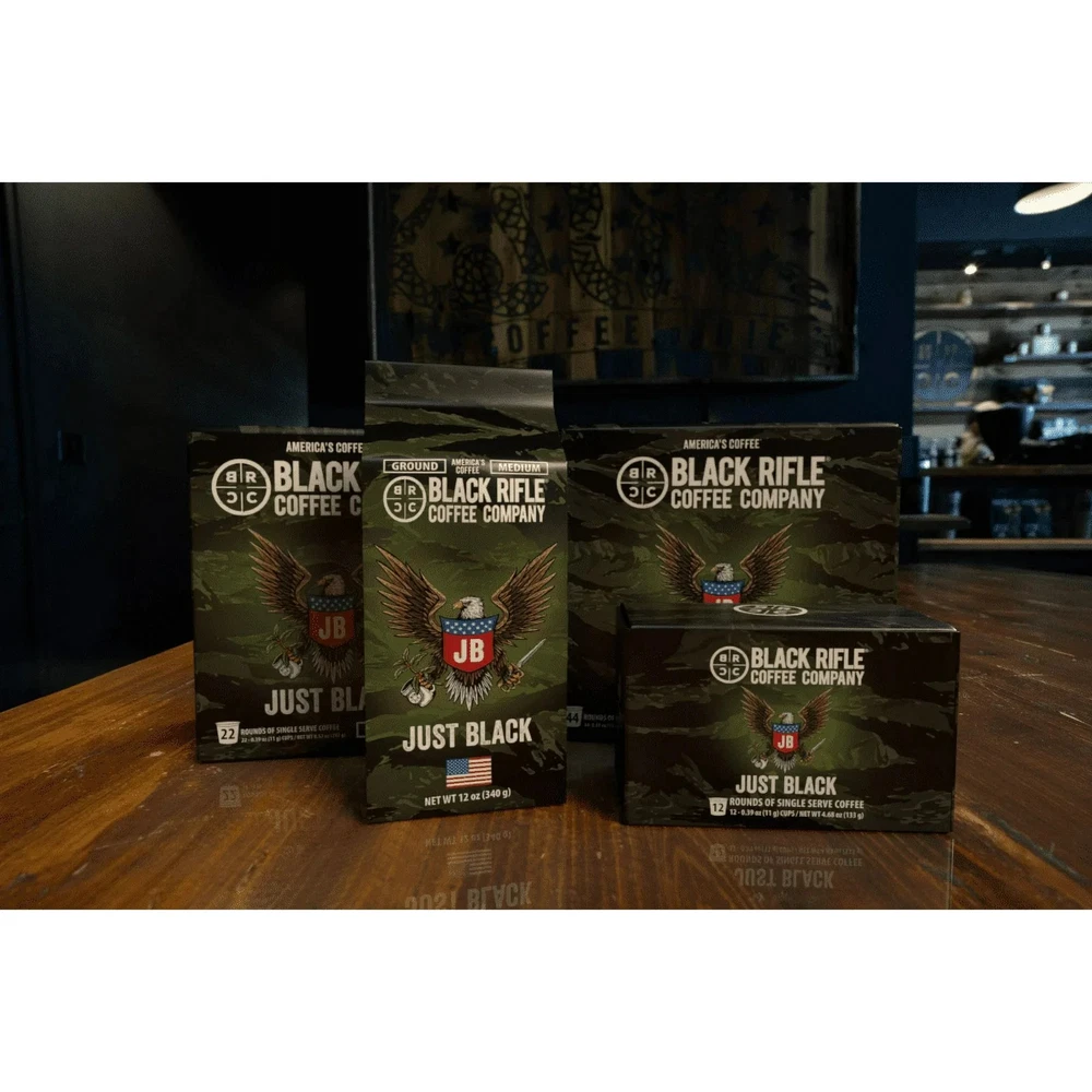 About the item : Dark Roast: Strong and bold dark roast coffee with deep smoky flavor, designed for true coffee lovers who enjoy a powerful cup. One 12 oz bag makes around 16 cups, offering great value. For best results brew using the Golden 18:1 ratio, which equals 10 g coffee per 180 ml water. Perfect universal grind for coffee pots, Chemex, French press, and Aeropress. Veteran operated, roasted and blended in America, shelf-stable, ambient stored, and gluten-free for long freshness. Fur Missile: A bold and flavorful coffee blend with tasting notes of nutty richness, chocolate depth, and fruity balance. One 12 oz bag makes about 16 cups of coffee. Brew perfectly with the Golden 18:1 ratio (10 g coffee per 180 ml water). Ideal texture for coffee pots, Chemex, French press, and Aeropress. Crafted by a proud veteran-founded American coffee company, roasted and blended in the USA, shelf-stable, gluten-free, nutty, chocolatey, and fruity. Hazelnut: Smooth and mellow medium roast coffee featuring creamy and mellow hazelnut tasting notes for a comforting aromatic cup. Each 11 oz bag makes about 14 cups, offering long-lasting value. Brew best using Golden 18:1 ratio (10 g coffee per 180 ml water). Ideal universal grind for coffee makers, Chemex, French press, and Aeropress. Veteran operated U.S. brand, roasted and blended in America, shelf-stable, ambient stored, and gluten-free for lasting freshness. Electric Eagle Espresso: Medium roast espresso ground coffee crafted for smooth, strong flavor and ideal for espresso lovers. 12 oz bags roasted and blended in America by a proud veteran-operated coffee brand that supports military and first responders. Brew it your way using the Golden 18:1 ratio for balanced strength. Best enjoyed with any brewing equipment including espresso machines and drip methods. Shelf-stable, ambient stored, gluten-free, and roasted in the USA. Just Black: Bold and classic dark roast coffee featuring premium tasting notes of milk chocolate, walnut richness, and a buttery smooth finish. One 12 oz bag makes about 16 cups. Brew best with Golden 18:1 coffee ratio (10 g per 180 ml water) for perfect balance. Universal ideal grind for coffee pots, Chemex, French press, and Aeropress. Veteran operated, roasted and blended in America, shelf-stable, ambient stored, and gluten-free for lasting freshness. Kodiak Attack: Powerful and bold coffee blend featuring rich tasting notes of chocolate, berry sweetness, and citrus brightness. One 12 oz bag makes around 16 cups. Brew ideally using Golden 18:1 coffee ratio (10 g per 180 ml water). Ideal universal grind for coffee pots, Chemex, French press, and Aeropress. Veteran operated U.S. brand, roasted and blended in America, shelf-stable, gluten-free, bold, chocolatey, berry, citrus profile. Loyal Spirit: Light roast coffee blend featuring smooth tasting notes of chocolate richness, citrus brightness, and berry sweetness for a balanced aromatic cup. One 12 oz bag makes about 16 cups. Brew best using Golden 18:1 ratio (10 g coffee per 180 ml water). Ideal grind for coffee pots, Chemex, French press, and Aeropress. Proud veteran-operated American coffee brand, roasted and blended in the USA, shelf-stable, gluten-free, light roast with chocolate, citrus, berry notes. Spirit of '76: Medium roast coffee crafted with tasting notes of caramel sweetness, citrus brightness, and almond richness for a smooth bold profile. One 12 oz bag makes around 16 cups. Brew best using Golden 18:1 ratio (10 g coffee per 180 ml water). Ideal universal grind for coffee pots, Chemex, French press, and Aeropress. Veteran operated, roasted and blended in America, shelf-stable, ambient stored, and gluten-free. Tactisquatch: Medium roast ground coffee featuring unique and bold tasting notes of black currant, molasses richness, and orange citrus finish for a deep flavorful profile. Best enjoyed with any brewing equipment. Crafted by a proud veteran-operated American coffee company that supports military and first responders. Roasted and blended in America, shelf-stable, gluten-free, aromatic and bold. Wakin the Neighbors High Caffeine: Medium roast high-caffeine ground coffee crafted for a powerful extra caffeine boost and long-lasting energy. 12 oz bags designed to go a long way. Brew ideally using Golden 18:1 coffee ratio (10 g per 180 ml water) for balanced strength without bitterness. Perfect for coffee makers, French press, Chemex, and Aeropress. Proud veteran-operated U.S. brand, roasted and blended in America, shelf-stable and ambient stored