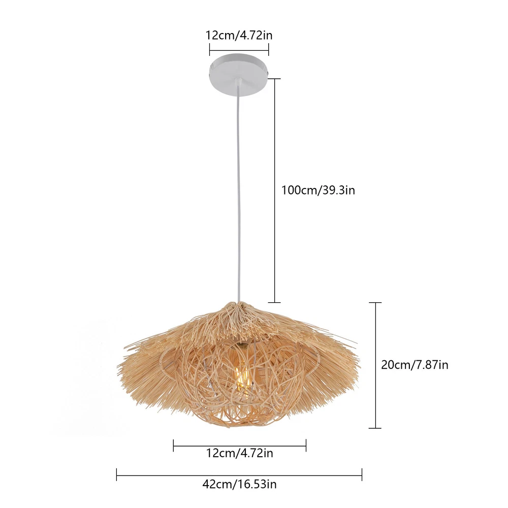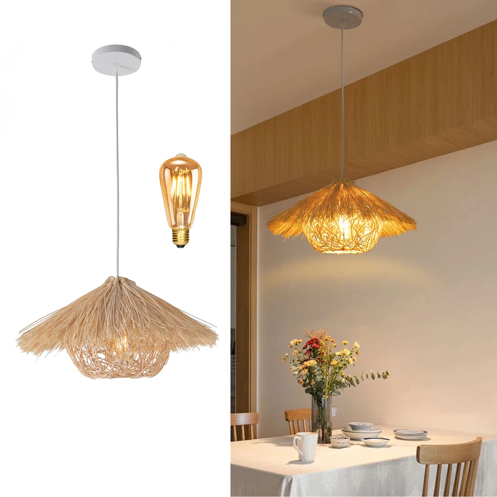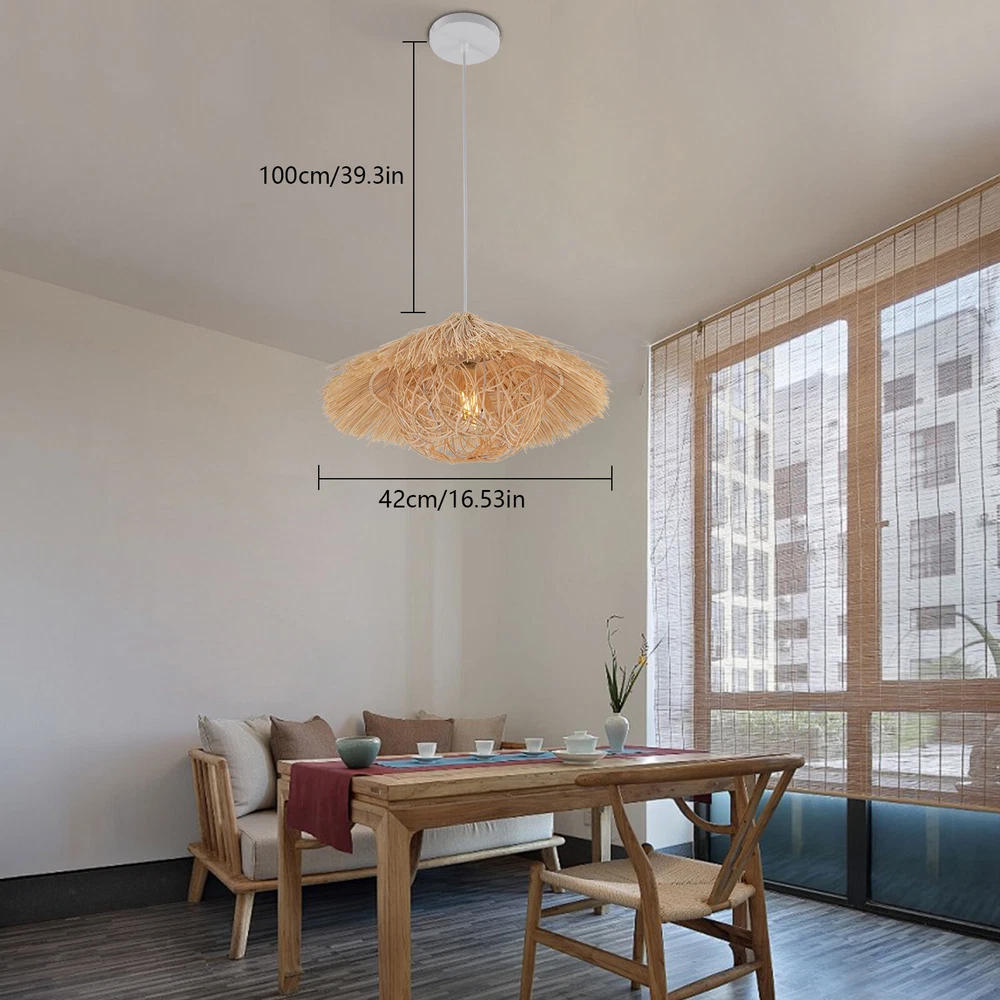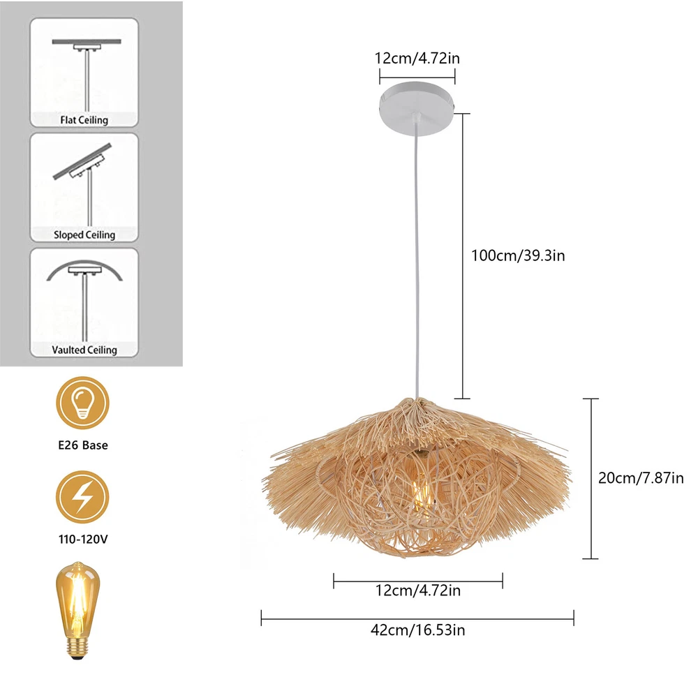 Application With a lighting area of 215.28-322.92 ft², it is suitable for flat and sloping ceilings in kitchens, living rooms, bedrooms, balconies, bars, aisles, foyers, hotels, restaurants, corridors, cafes, children's rooms, libraries, basements, clubs, and other indoor places. Specification Material: Rattan, Iron Process: Hand-Woven Color: Wood Color Style: Bohemian Assembly Required: Yes Indoor/Outdoor Usage: Indoor Mounting Type: Ceiling Mount Efficiency: E Light Source: 1* E26 Bulb(Not Included) Max. Bulb Power: 60W Voltage: 110V Lighting Area: 20-30m²/ 215.28-322.92 ft² Base Diameter: 12cm/ 4.72in Package Included 1* Chandelier All Accessories for Installation E26 Wicker Rattan Shade Pendant Light Hand-Woven Farmhouse Ceiling Lamp Fixture Description This chandelier will not only bring light and warmth to your life but also add interest to your room. The hand-woven look complements the theme of the room and adds a beautiful visual effect to the room wherever it is placed. In addition, you can also adjust its height according to your actual needs and preferences. It is not only a light but also a beautiful decorative piece. Key Features Sturdy and Durable: This product is made of high-quality rattan and iron with a hand-woven process, which is environmentally friendly, non-toxic , stable, and durable. Unique Appearance: The hand-woven lampshade is simple in design and novel in appearance, and the light is projected on the ceiling through the lampshade to form a very beautiful pattern, making your room more romantic. Adjustable Height: You can adjust the height of the chandelier by adjusting the length of the hanging wire ( 3.94-39.37in ) for different ceiling heights. Thoughtful Design: The semi-open shade not only allows light to diffuse and illuminate the space but also makes it easy to change the bulb. Meet Your Needs: Our product is available for dimmable bulbs(not included), and you can adjust the color of the light source to suit your needs. Easy to Install: With a simple structure and complete set of accessories, all you need to do is finish assembling the chandelier, then connect the pre-wired wires on the ceiling and screw the E26 bulb( not included ) into the lamp holder. Ideal Gift: This product is stylish and high-quality and can be used as an ideal housewarming, birthday, and holiday gift for parents, friends, and loved ones. Good Customer Service: We stand behind all our guests and look forward to assisting you with your purchase. It is our pleasure to answer your confusion and questions. The end of the story between us is not "we sell and you buy". Details E26 Lamp Head: The standard E26 lamp head is suitable for incandescent, halogen, LED bulbs, etc. for easy replacement. Solid Base: The large round base ( diameter: 4.72 in ) increases stress area, and can make the item fixed firm without falling easily. Application With a lighting area of 215.28-322.92 ft², it is suitable for flat and sloping ceilings in kitchens, living rooms, bedrooms, balconies, bars, aisles, foyers, hotels, restaurants, corridors, cafes, children's rooms, libraries, basements, clubs, and other indoor places. Specification Material: Rattan, Iron Process: Hand-Woven Color: Wood Color Style: Bohemian Assembly Required: Yes Indoor/Outdoor Usage: Indoor Mounting Type: Ceiling Mount Efficiency: E Light Source: 1* E26 Bulb(Not Included) Max. Bulb Power: 60W Voltage: 110V Lighting Area: 20-30m²/ 215.28-322.92 ft² Base Diameter: 12cm/ 4.72in Hanging Wire Length: 100cm/ 39.3in Adjustable Height Range: 10-100cm/ 3.94-39.37in Lampshade Diameter: 42cm/ 16.53in Lampshade Opening Diameter: 12cm/ 4.72in Lampshade Height: 20cm/ 7.87in Package Included 1* Chandelier All Accessories for Installation Notes Please check the dimensions of the product before ordering to ensure it fits your home. Please make sure the power is cut off before installation. To ensure your safety, we recommend that two people install it together. Please install it by someone with an electrical license if necessary. Please wear electric insulation gloves (not included) and avoid scratching the surface of the item and the electric wire when installing. Please use it within the applicable voltage range and clean it regularly. Please cut off the power supply when you clean the item. Please wipe with a soft cotton cloth and do not use household cleaning agents. Please use it in a dry environment. It is not suitable for outdoors and bathrooms. Please allow the slight color difference caused by the shooting light and the 1-3 cm error due to manual measurement, and make sure you do not mind before ordering. Payment Delivery details Terms of sales About us Contact us Payment We accept ebay payment 。 Fees such as import duties, taxes are not included in the item price or shipping costs. These charges are the buyer's responsibility. Delivery details Shipping: 2-9 working days to: USA Terms of sales We maintain high standards of excellence and strive for hundred percent customer satisfaction. Feedback is very important to us. We hope that you contact us immediately before you give neutral or negative feedback, so that we can address your concerns. It is impossible to address issues if we do not know about them! About us Your satis faction is our ultimate goal. We work hard to earn your trust and future business. Our certified technicians have tested each item before shipping. The unit comes with 1 year limited warranty on all manufacturing defects. a) If you receive a defective item, you may return it or ask for a discount. Please contact us within 14 days after you receive the package. b) What you returned must be intact and in its original packaging as re? u. Customer is responsible for shipping costs of the returned item. c) We will cover the cost of shipping back t with the shipping rate indicated in the registration page. We will send you a new unit or refund the full payment you paid. Thank you. Contact us Business Hour Business Hour: M