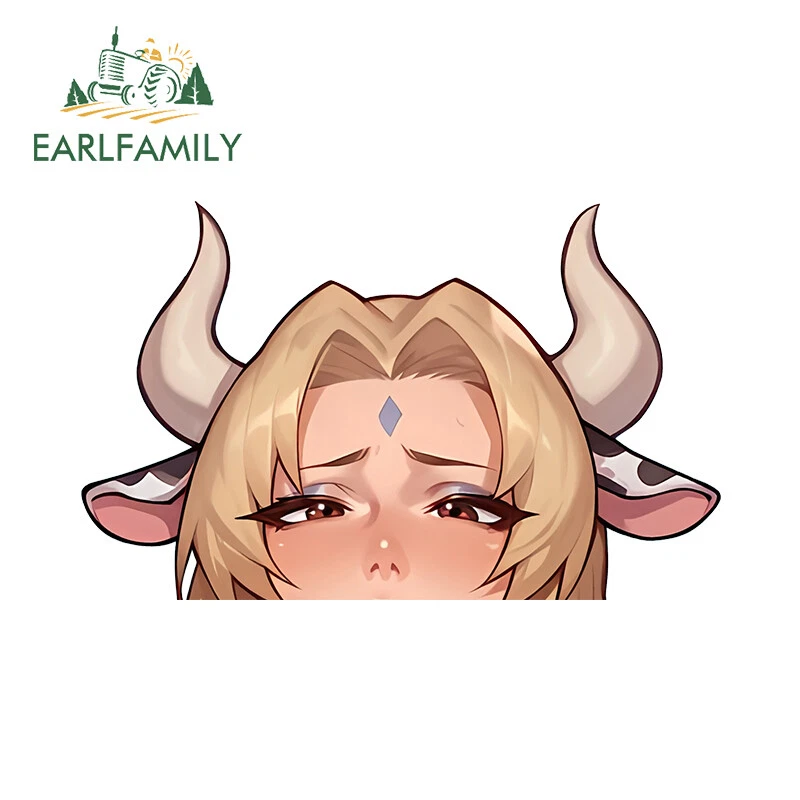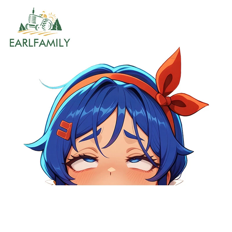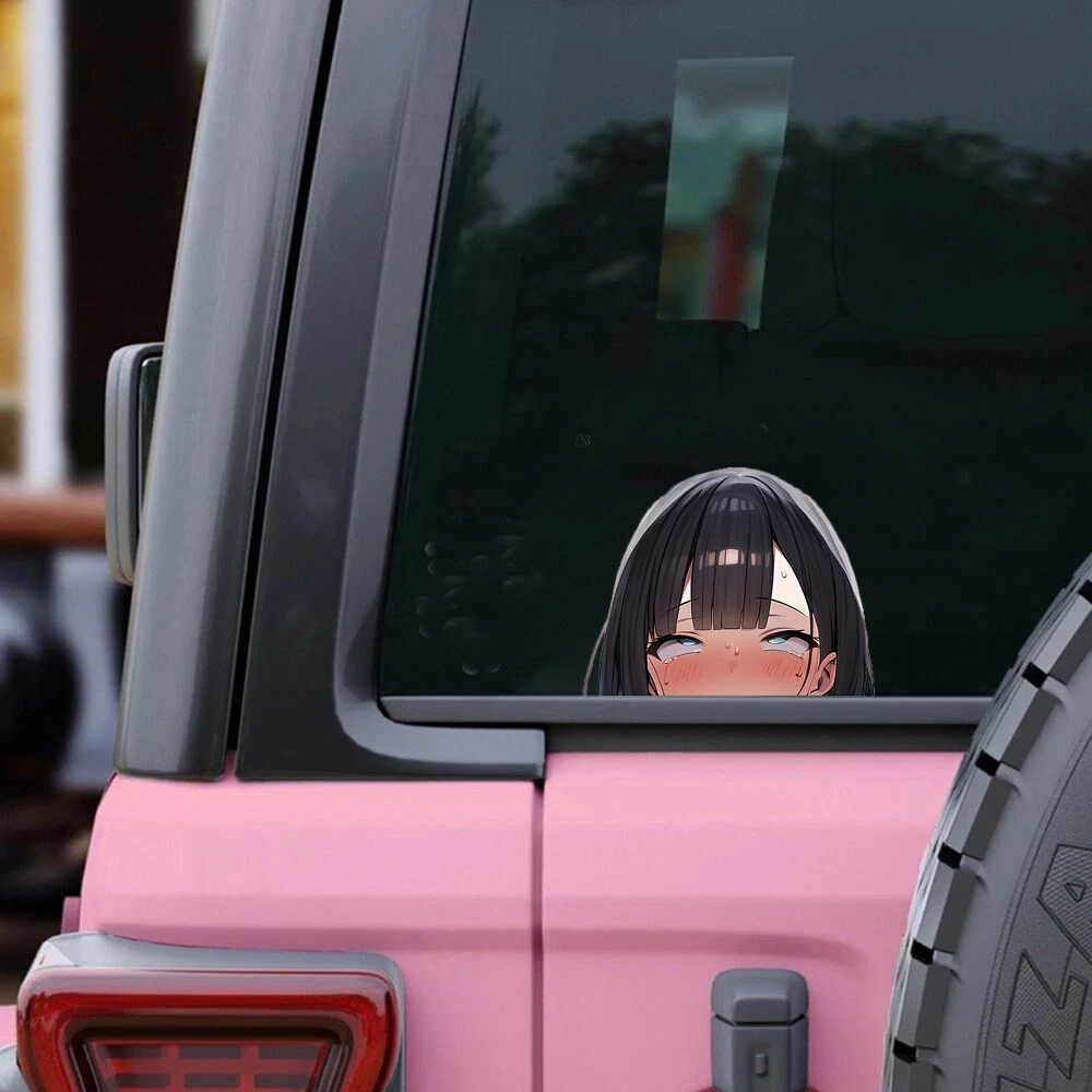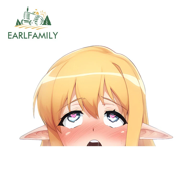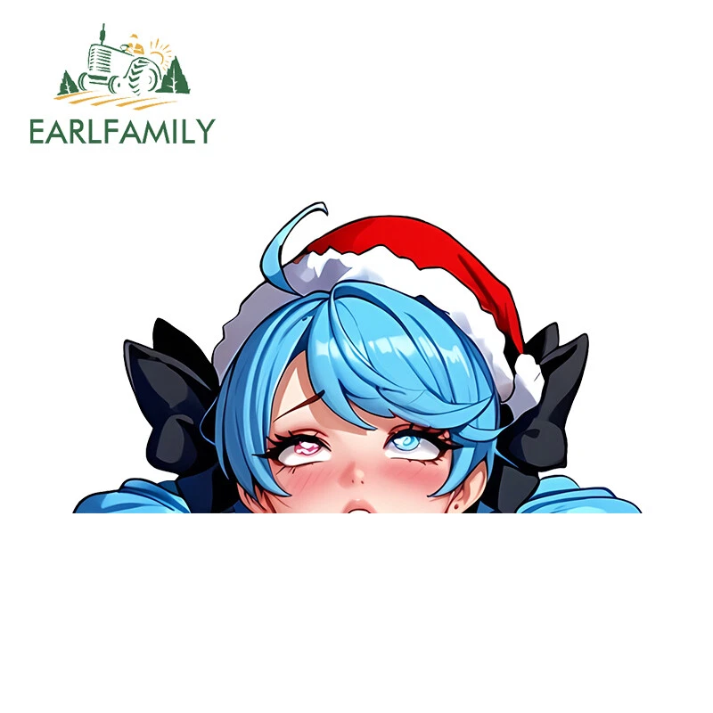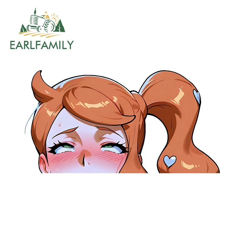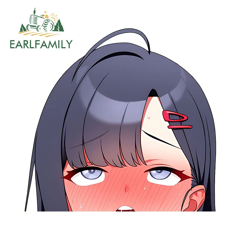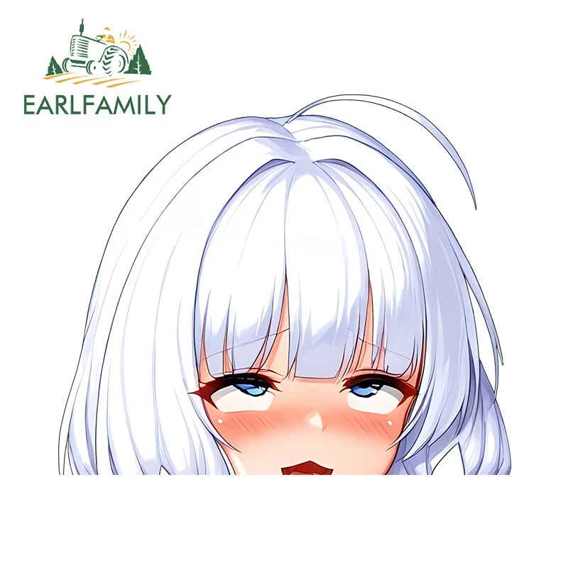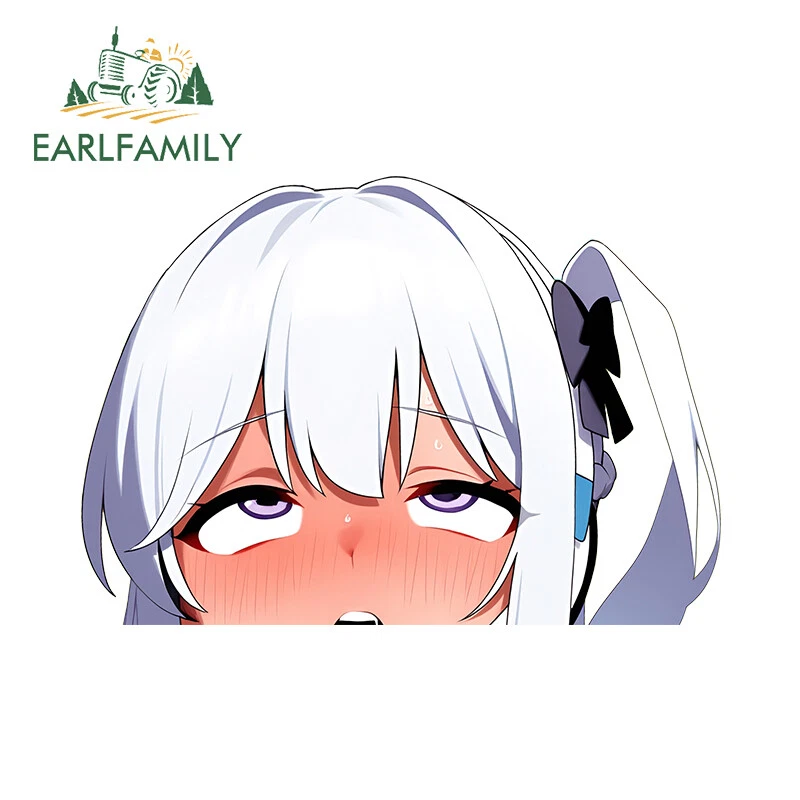 EARLFAMILY 5.1" Ahegao Anime Girl Waifu Peeker Car Decals Vinyl Windows Stickers