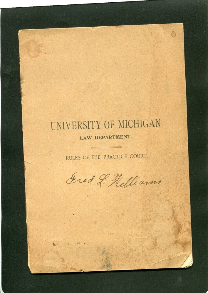 This 9 x 6 inch booklet is 5 pages long and apparently belonged to Fred L. Williams as his signature is on the front. The cover is somewhat soiled but the pages are clean. Shipping includes insurance.