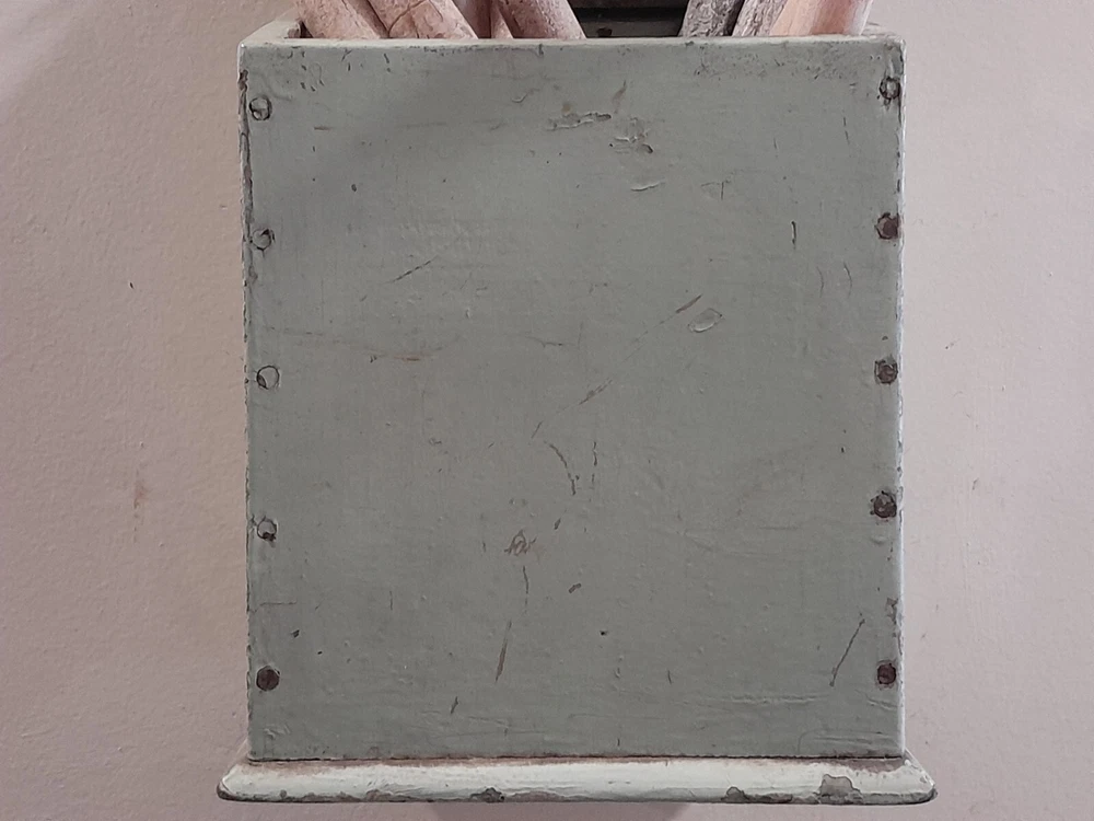 GREAT OLD FARMSTEAD ANTIQUE WALL COUNTER BOX. THIS PIECE HAS NICE DEEP POCKET THAT IS PERFECT FOR DISPLAYING YOUR PRIMITIVE WOODEN WARE OR EARLY CANDLES. THIS BOX CAN BE HUNG ON THE WALL OR SIT ON THE COUNTER. CONDITION IS GOOD EXHIBITING LOTS OF WEAR FROM AGE AND USE. THE PAINT IS CRACKLED AND MISSING IN AREAS AS SHOWN. WONDERFUL EARLY WALL COUNTER BOX FOR YOUR PRIMITIVE COUNTRY FARMHOUSE DECOR. MEASURES 13 1/2" HIGH X 7" WIDE X 7" DEEP. PLEASE EMAIL WITH QUESTIONS.