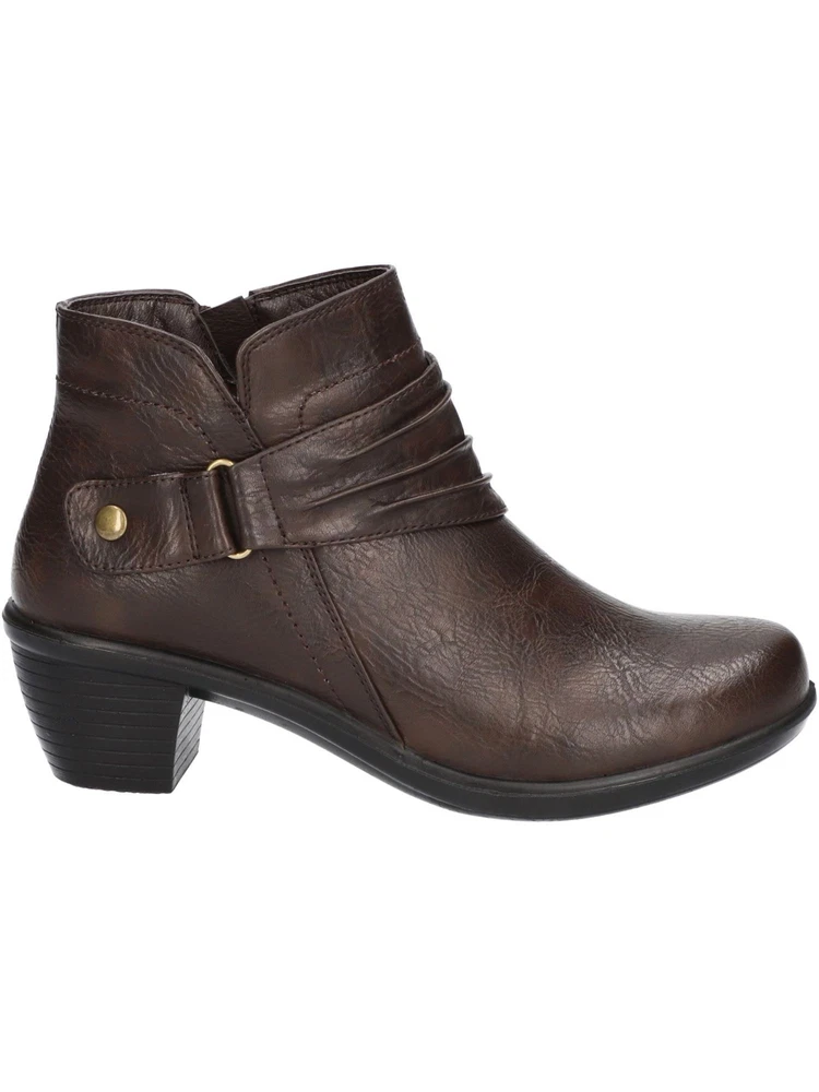 EASY STREET Womens Brown Ruched Damita Round Toe Block Heel Zip-Up Booties 10 M