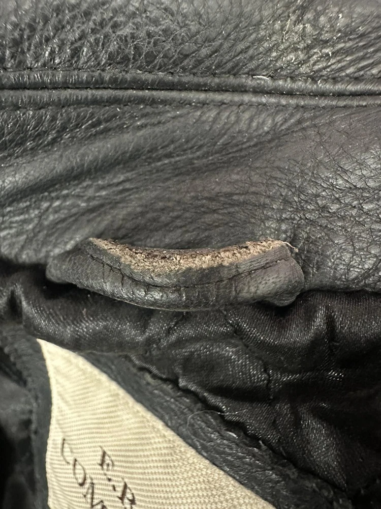 Department:manSize Type:RegularType:JacketUPC:Does not applyBrand:E.B.COMPANYVintage:Yesgtin13:Does not applySize:50Outer Shell Material:LeatherClosure:ZipperColor:BlackStyle:Jacket