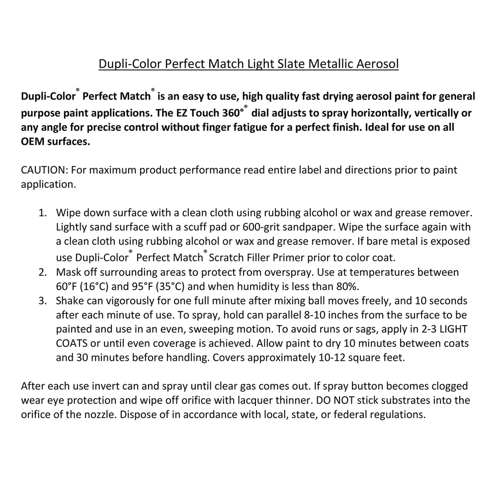 AUTOMOTIVE SPRAY PAINT – Perfect Match Automotive Spray Paint is a high-quality, fast-drying, acrylic lacquer vehicle paint that is specially formulated to match the exact color of the original factory-applied coating. FIND THE PERFECT MATCH – Color code is 17 WA7468. vehicle color matching paint codes are tied directly to the color codes on your car ID tag/sticker. For GM vehicles, you can find it under the carpet in the trunk or the driver’s door jamb. EASY TO USE – Featuring an EZ Touch 360° Fan Spray Nozzle, this SUV, truck or car paint is easy to use and ensures maximum coverage. It’s dry to the touch in 30 minutes and can be handled in 1 hour. IDEAL USES – Ideal for use on all OEM paint surfaces, this spray paint is great for larger vehicle touch-ups and for color matching vehicle trim and accessories. – Since 1938, has been the trusted brand leader in providing easy-to-use, innovative, and exact color matched products to restore, restyle and protect vehicle appearance.