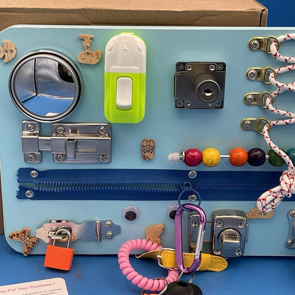 EBIOO Montessori Locks & Latches Busy Board Educational Activity- Wood