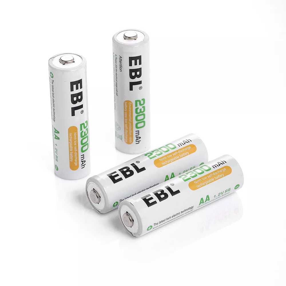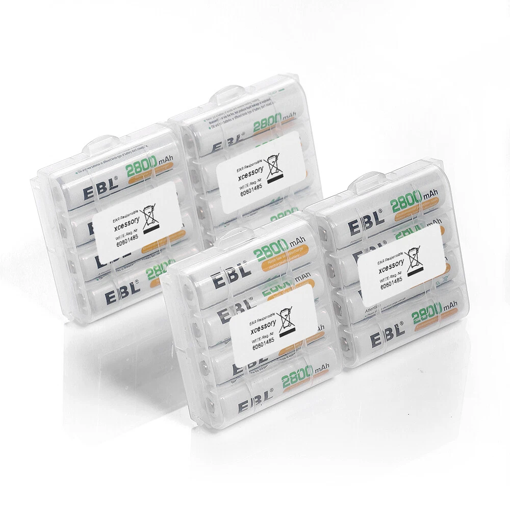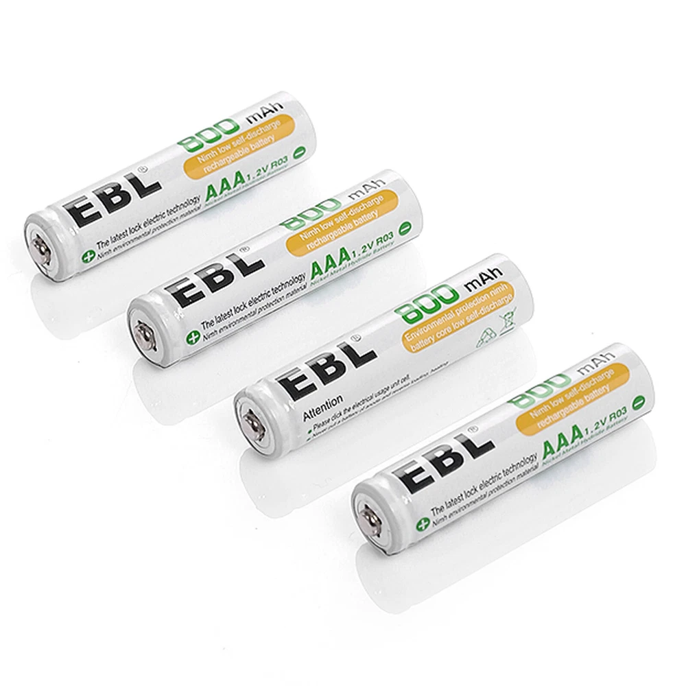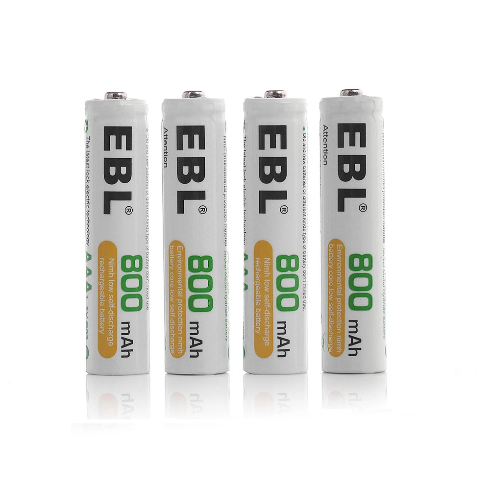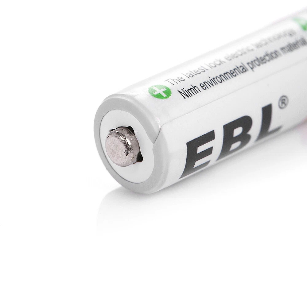 Features For AA & AAA Ni-MH Rechargeable Batteries: Features 1. EBL Branded ,Pro-environment. 2. NO memory effect NIMH chemistry. 3. Recharged up to 1000 times. 4. Relatively long service life. 5. 100% New and high quality. 6. Superior performance under low temperature condition. The Details 1. Battery Voltage: 1.2V 2. Capacity: (800mAh AAA)/(1100mAh AAA )/(2300mAh AA )/(2800mAh AA) 3. Battery Size: AAA/AA 4. Rechargeable type: Ni-MH/ NIMH High capacity NO memory 5. Storage Case : Yes (for 4PCS Battery/per case) 6. Brand: EBL 7. Model: R03/ R06 8. Case : included(4pcs battery /case) For 500mAh AAA 1000mah AA Ni-CD Rechargeable Batteries: 1. Battery Type: AAA/ AA 2. Capacity: 400mAh/1000mAh 3. Voltage: 1.2V 4. Chemistry: Ni-CD 5. Weight: 7.8 ounce (220 g) 6. Pro-environment, 7. EBL batteries can be recharged up to 1200 times when fully or partially drained. 8. Batteries are great for use in household devices such as digital cameras, toys, remote controls, hand held games Compatible with Flash Light,LED Torch ,Camera, Remote control, Garden solar light, ,Detector ,toys etc , multifunction battery Package 4~20pcs AA / AAA Rechargeable Batteries (see dropdown menu droplist) with Clear Storage Box( 4pcs batteries /Case)