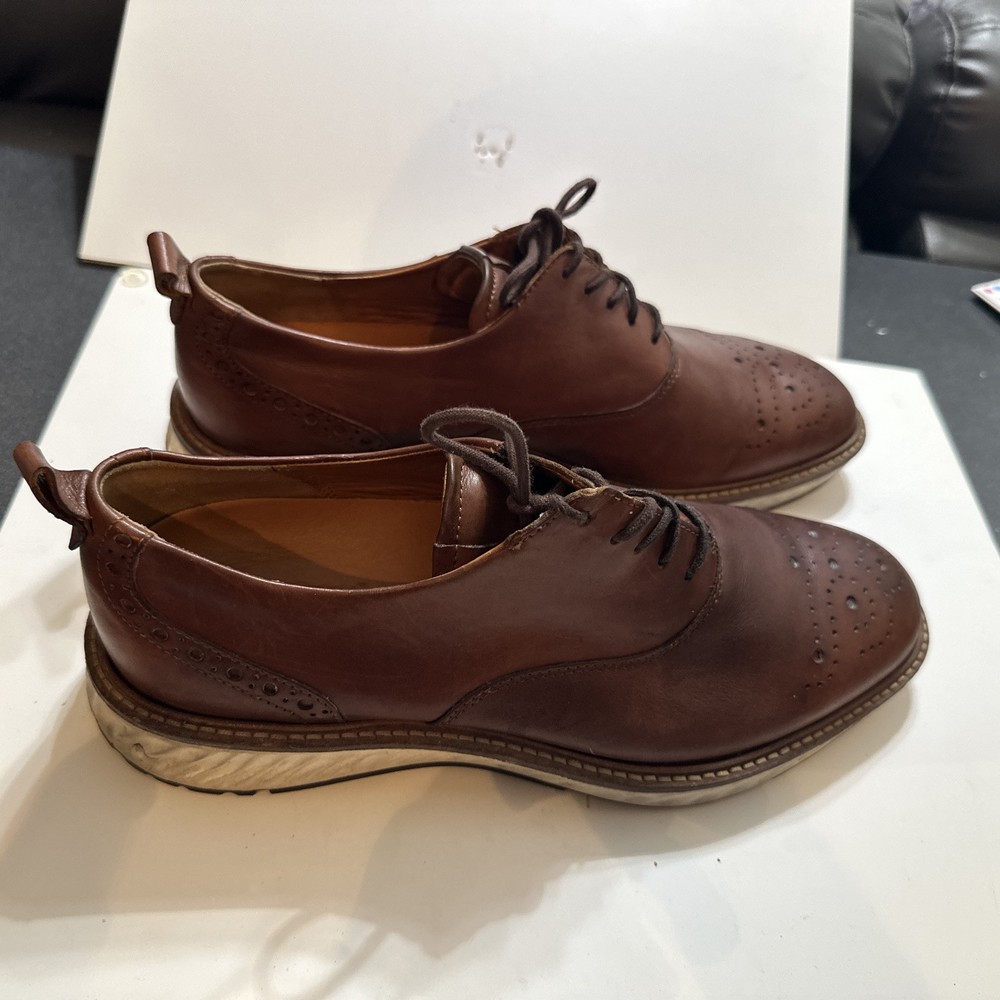 Closure: Lace Up Occasion: Casual, Travel US Shoe Size: 9 Lining Material: Leather UPC: Does not apply gtin13: Does not apply Color: Brown Upper Material: Leather EU Shoe Size: 43 Features: Arch Support, Breathable, Comfort, Cushioned, Lined, Slip Resistant Style: Oxford Pattern: Solid Department: Men Type: Casual Outsole Material: Polyurethane Country/Region of Manufacture: Portugal Brand: ECCO Shoe Width: M Insole Material: Foam Toe Shape: Round Toe Model: ST.1 Hybrid