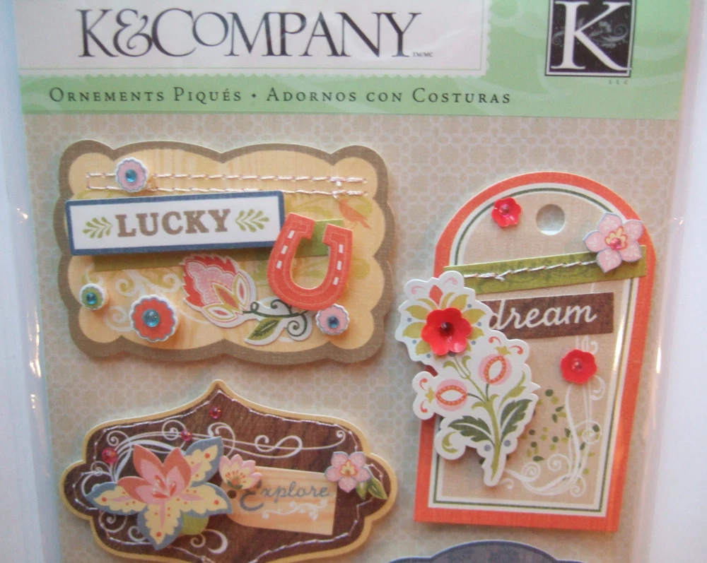 K & Company Grand Adhesions ~ EDAMAME STITCHED A DORNM ENTS ~ Dimension a l Stickers The sticker sheet measures approximately 4 1/2 " x 6" Please add items to your shopping cart and shipping will combine automatically. Free Shipping on orders over $50 (USA only) This product is stored in a smoke free environment. Please feel free to contact me with any questions you may have. FREE SHIPPING ON ORDERS OVER $50 (USA)