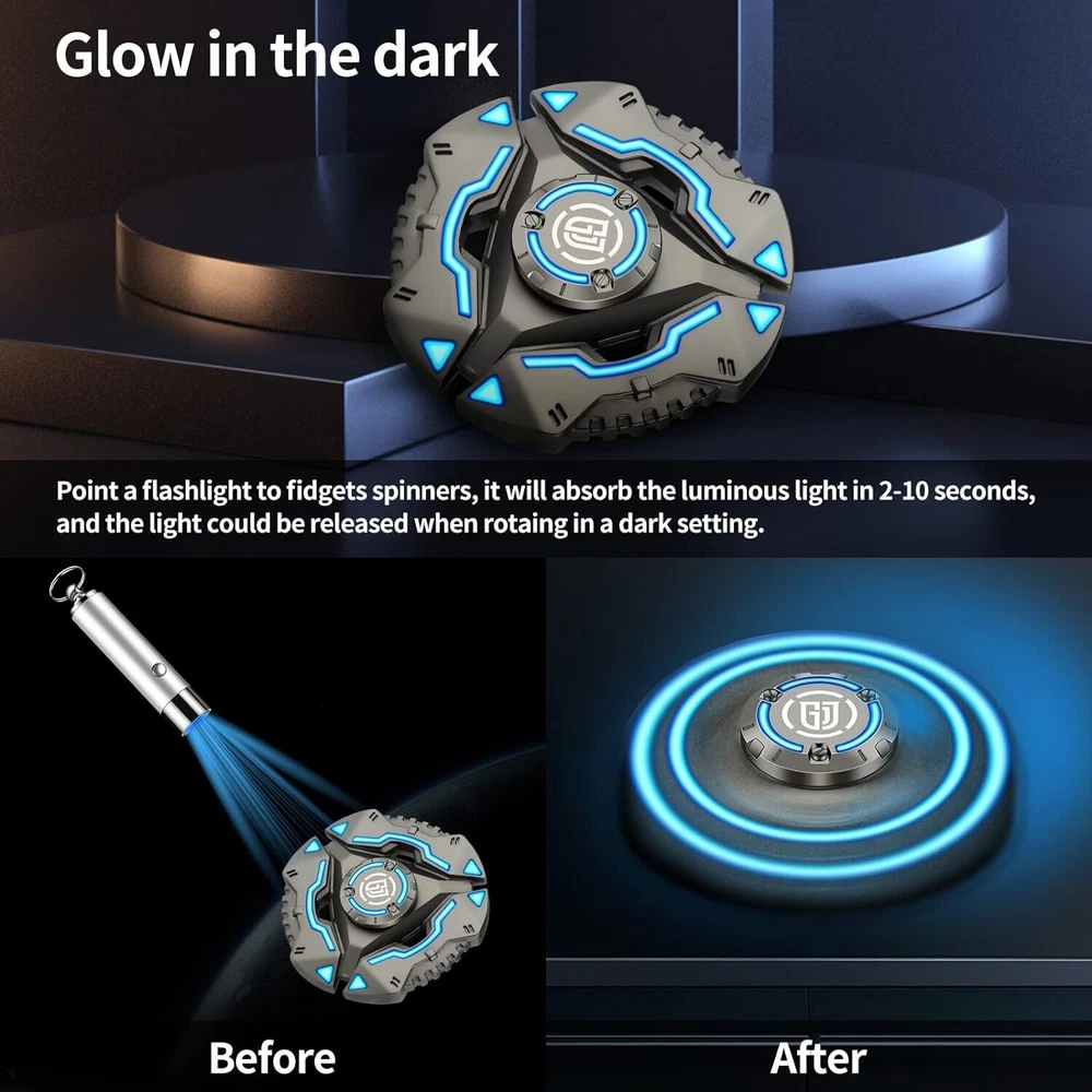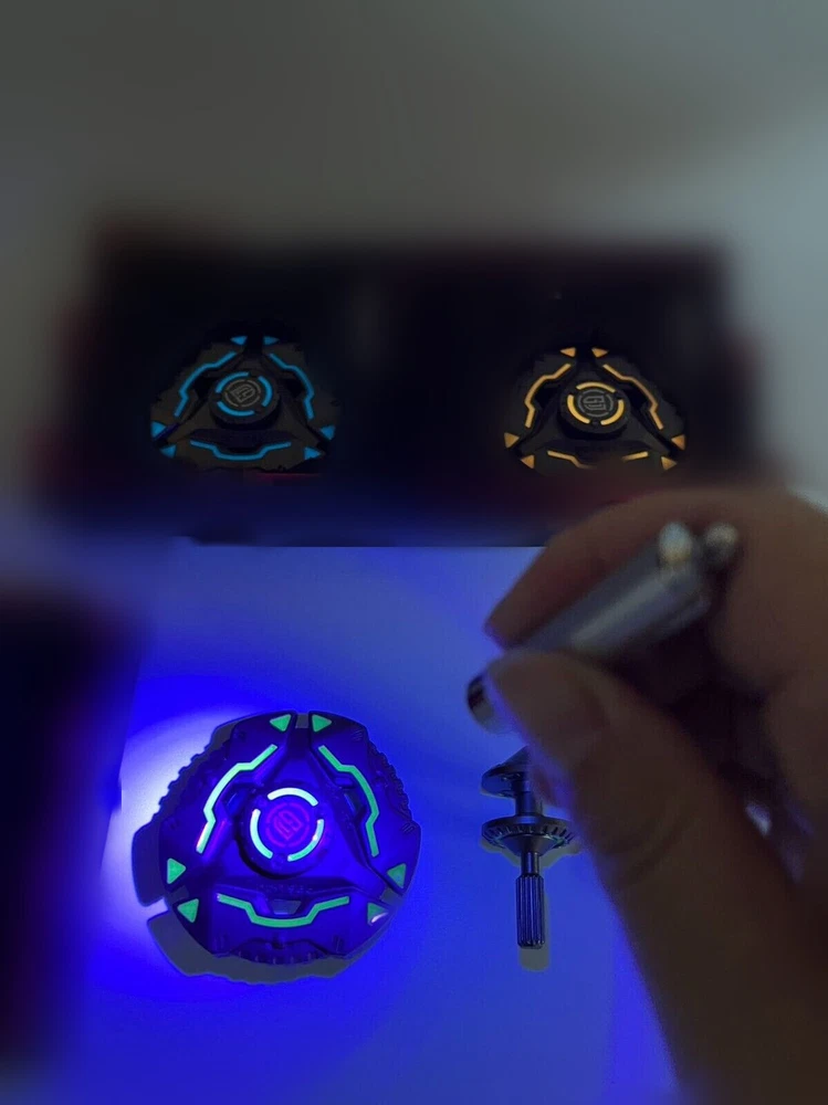 You must know before you buy Long-lasting Rotation Quiet Bearing Luminous Effect DIY Best Gift Material:alloy Product Size:about 5.5x5.5x1.4cm Suitable:8 years old and up Main features: help with autism, relive work pressure, reduce anxiety, help depression Package included:1x Fidget Spinners (Since the package cannot come with a battery,the provided violet light requires your own battery.) Safety Warning CHOKING HAZARD -- Small parts. Not for children under 8 years. This is a Fidget Spinner gift exclusively designed which is very suitable for adults and children, and can effectively relieve stress and worries. It is also suitable for passing time, calming and thinking, which will make your mood more pleasant, effectively improve concentration and help ADHD. Multiple DIV gameplay: The upgraded version adds accessories, which can transform 3 kinds of rotation forms, and assemble at will, adding a variety of fun to decompression. Glow in the dark: Use a flashlight to illuminate Fidget Spinners, absorb the luminous light source within 2-10 seconds, and release light in the dark when rotating in the dark, which is very interesting. The rotation time is the silent bearing, the sound is less than 15 decibels, and it can be disassembled and assembled. This product material is 100% aluminum alloy, and the appearance is polished. Stable and feels good on the hand. Fidget Spinner is small in size, easy to carry, and the product is beautifully packaged. It is very suitable as a holiday birthday gift for friends and relatives. Healthy Goods. Note: 1): Due to the different monitor and light effect,the actual color of the item might be slightly different from the color showed on the pictures. 2): The size Weight of the product is measured manually,there will be a certain error,please understand. 3): Because the factory batch is different,so there may be a small difference,please refer to the goods actually received pls make sure you do not mind before you bid. Hope you can understand. Thank you!