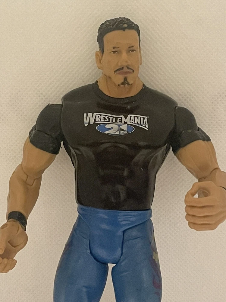 Get your hands on this vintage WWE action figure of the legendary Eddie Guerrero. With intricate details and excellent craftsmanship, this figure brings to life the beloved persona of Eddie Guerrero. From his signature smirk to his iconic wrestling gear, every aspect of this action figure is delicately crafted to provide an authentic experience for WWE fans and collectors alike. Add it to your collection of WWE memorabilia today and relive the glory days of one of the greatest wrestlers of all time. It’s got a few paint fade spots but overall great collectible (SELLING AS PICTURED)