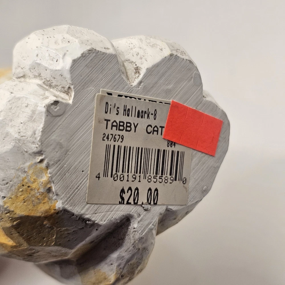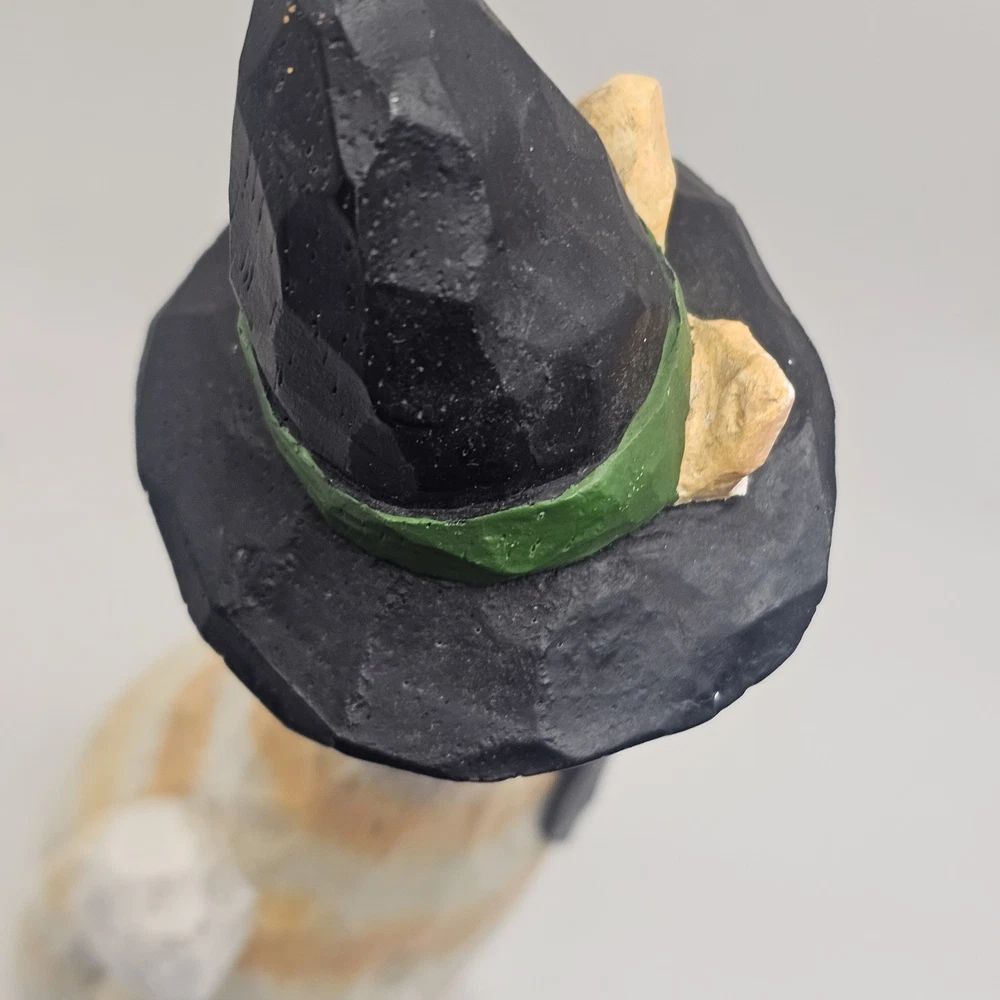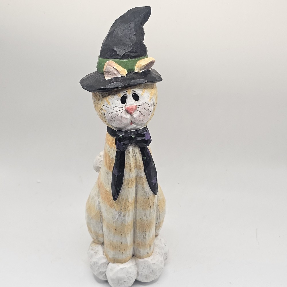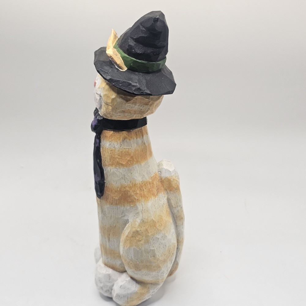 The product is a 9" figurine sculpture of a Halloween Cat Witch with an orange tabby design, signed by artist Eddie Walker. Made by Midwest of Cannon Falls, this multicolored figurine is a unique collectible perfect for celebrating Halloween. The sculpture features intricate details and is a charming addition to any holiday decor collection. See photos for imperfections sold as is
