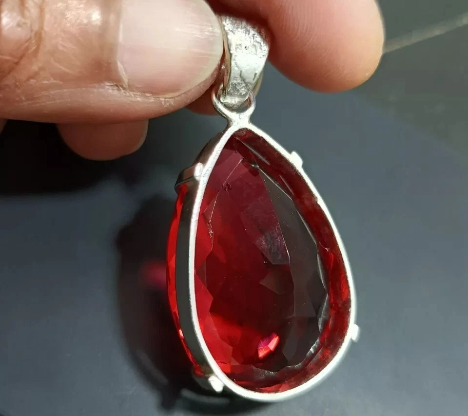 Handmade: Yes Seller Notes: “''New Condition"” Main Stone Depth: 17 mm Era: Undated Main Stone Width: 24 mm Wholesale: Yes Color: Red Metal: Silver Base Metal: Silver Chain Type: N/A Features: Adjustable Pendant Shape: Pear Style: Pendant Closure: Hook UPC: Does Not Apply Gemstone Clarity Grade: Eye Clean gtin13: Does Not Apply Main Stone Treatment: Not Enhanced Cut Grade: Excellent Material: Gemstone Signed: Yes Secondary Stone: Topaz Brand: Jitendergems Pendant/Locket Type: Charm Vintage: Yes Theme: Nature Necklace Length: N/A Main Stone Creation: Natural Main Stone Color: Red Occasion: Anniversary, Birthday, Christening, Christmas, Engagement, Mother's Day, Valentine's Day, Wedding Main Stone Length: 33 mm Number of Gemstones: 1 Metal Purity: 925 Seller Warranty: Yes Main Stone: Topaz Type: Pendant Country/Region of Manufacture: India Personalize: Yes Main Stone Shape: Pear Country of Origin: Brazil Setting Style: Prong