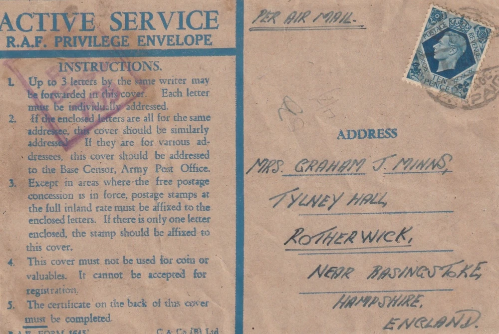 eBay Template Preview EGYPT - GB... 1942-44 RAF CENSOR ON HONOUR ENVELOPE FRONT with RAF CENSOR 709 (Type R11)... Stock ref: 50119 1942-44... Blue printed Active Service / RAF Privilege Honour Envelope FRONT to Rotherwick near Basingstoke by Airmail & bearing GB GVI 10d tied faint Egypt /Pre Paid / 86 & with square violet RAF/Censor/709 (R11) recorded used with EPP 86 from 12 Jan 42 to 9 Apr 1944... You will see at least 1000 Army Honour Envelopes for every RAF one... > Mike White Postal History 1,000s of Worldwide Postal History items for sale From Napoleonic Wars to the present day Specialising in Military or Censored and Occupation mails of the World Mike White Mike White is a buyer and seller of worldwide quality postal history. Specialising in military or censored and occupation mails of the world from the Napoleonic wars to the present day. Mike has crafted an impressive and credible reputation in the industry over the past thirty plus years, visiting and participating in trade fairs across the globe. Notable exhibitions include many Federation Internationale de Philatelie and Federation Internationale Asian de Philatelie shows. He is affiliated with The Civil Censorship Study Group (CCSG), Forces Postal History Society (FPHS), Military Postal History Society (MPHS), American Philatelic Society (APS) and The China Stamp Society (CSS). Mike's passion for philately, impressive portfolio of stock, extensive industry knowledge and impeccable service keep his patrons loyal and his business thriving. In 2016 Mike began transforming his business to 100% internet and postal based. He now operates his website from home in the beautiful Gulf of Thailand. Shipping All items are shipped Worldwide from Thailand. Multiple orders from current listings will be combined in one package up to 3 Orders, after which an additional $0.25 Per Order will be charged. If purchasing multiple items, please request a combined postage invoice. Standard Shipping (Orders to $99) $4.50 Registered or Orders over $99* $7.50 DHL Courier Worldwide $40.00 All shipping methods above are available Worldwide. *Please contact us to request registered shipping and an invoice will be provided. Returns: Buyer must pay postage and return via same method sent. Disclaimer: Buyer is responsible for all taxes and/or customs charges. Payment We accept payment via PayPal and all major Credit & Debit Cards. Contact Mike Feel free to contact Mike at any time through eBay messages if you have any questions, comments or requests. All messages will be responded to at the earliest opporunity -- usually within 24 hours. © Mike White Postal History -- trading since 1977 .