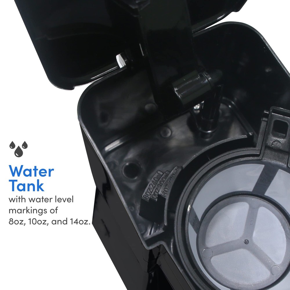 UNIVERSAL DESIGN AND WASTE REDUCING: No need for or plastic cups, we’ve a 14-Oz. stainless steel #304 interior insulated travel mug that fits perfectly under coffee dispensers and most cup holders so fresh coffee is always ready for you. Just Click, Brew and Go. QUICK INSTANT BREW TIME: With the personal single-serve coffee maker, you can brew fresh coffee at home in under 60 seconds. It’s great for “On the go mornings or a quick pick me up to save valuable time for your busy life. EASY -TOUCH OPERATION: Enjoy hot and freshly brewed coffee fast with this stylish, compact 600-Watt coffee maker. The -touch operation allows you to quickly and easily brew up to 14 oz. of tasty coffee at the perfect temperature without the long wait at your local coffee house. BREW GROUNDS: Brew a cup of coffee exactly how you want it with fresh coffee grounds. No more , we’ve a removable & reusable filter for use with coffee grounds and loose-leaf tea. EVERYTHING YOU NEED: The Personal Single-Serve Coffee Maker has everything you need to enjoy hot fresh coffee. Comes complete with coffee maker base, travel mug, lid and reusable filter. SAFETY FEATURES: We know that you’re busy and safety is important so we equipped our single serve coffee maker with auto-shut off and a thermal reset switch to prevent overheating. PORTABLE, SPACE SAVING DESIGN: The compact narrow and lightweight design fits and stores into small spaces making it easy for portability for use on vacations, dorms, offices, or small kitchens. DURABLE AND EASY TO CLEAN: Constructed high-quality, durable materials so you can enjoy great tasting coffee for years to come. Easy to clean and dishwasher safe (excluding the coffee maker base).