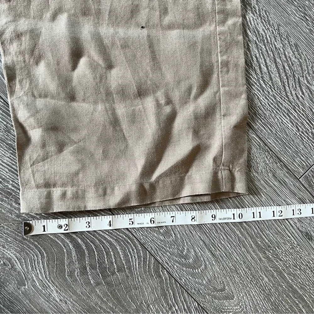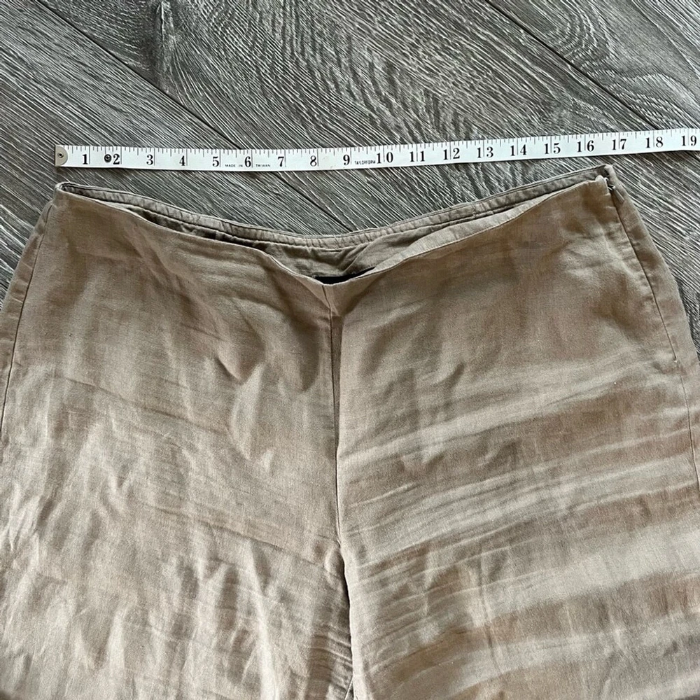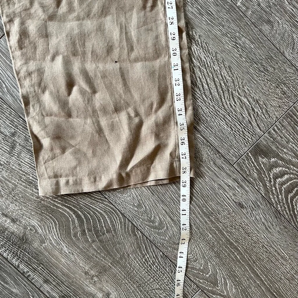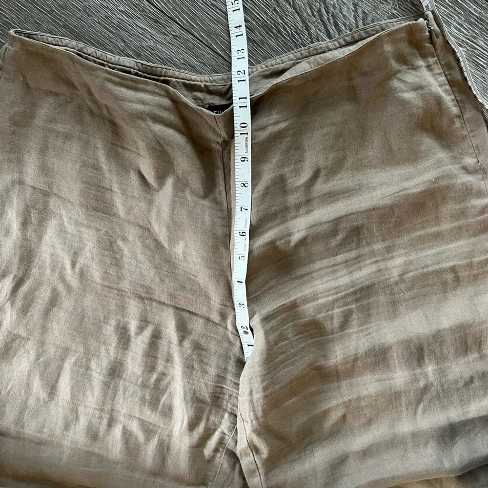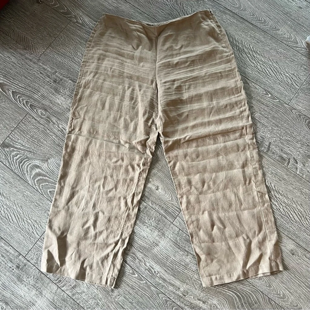 EILEEN FISHER Beige Irish Linen Wide Leg Trousers | Size LP | Lagenlook | Long Line Stay cool and stylish this summer with these EILEEN FISHER beige Irish linen wide-leg trousers. Crafted from 100% Irish linen, these trousers offer a lightweight and breathable feel, perfect for warm weather. The relaxed fit and slim silhouette create a lagenlook casual vibe, while the size zip closure ensures a comfortable fit. These trousers feature no pockets for a streamlined look. In excellent used condition (EUC) and machine washable for easy care. Size Large Petite with the following lie-flat measurements: Waist - 17”, Rise - 11”, Inseam - 28”, Outseam - 38.5”, Ankle - 10.5”. From a pet-free, smoke-free home. Cross-posted. Feel free to ask questions or make offers. Take advantage of great bundle deals!