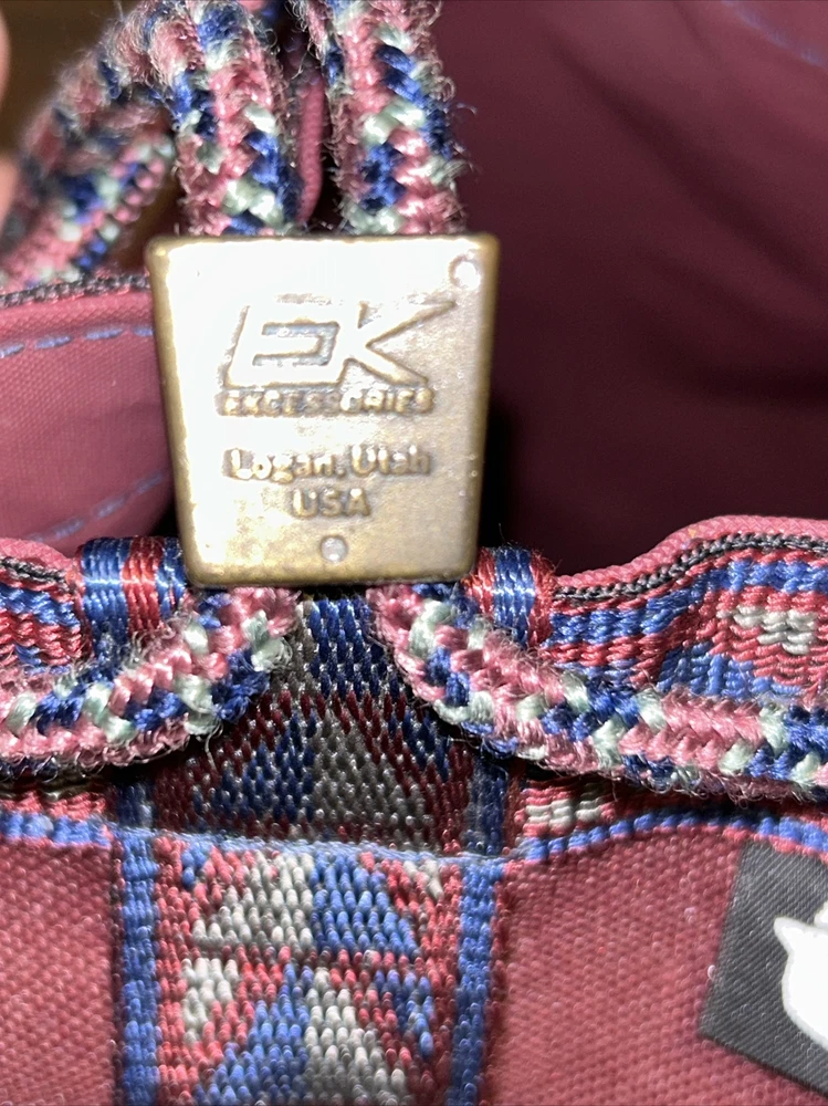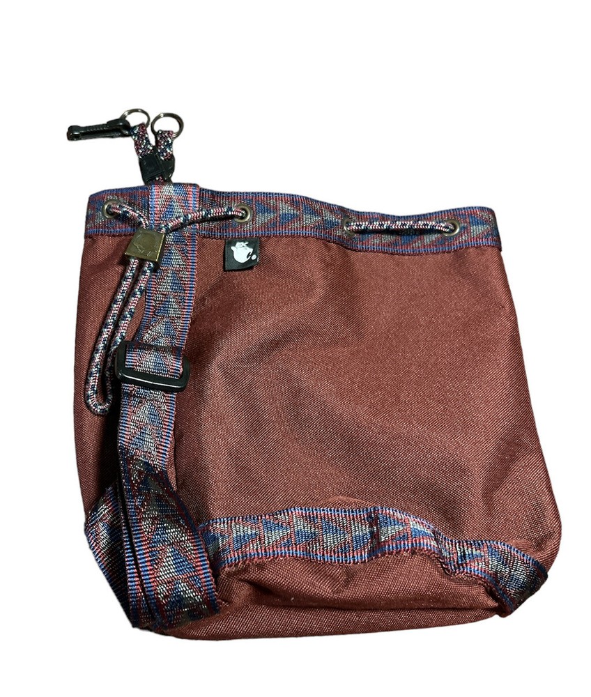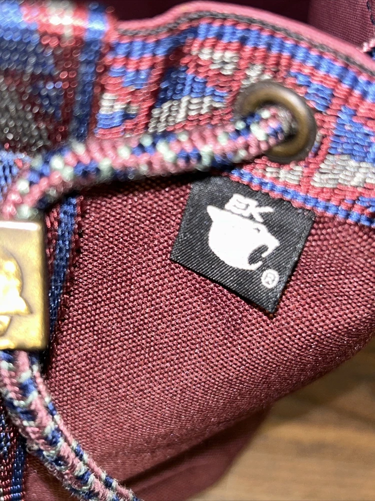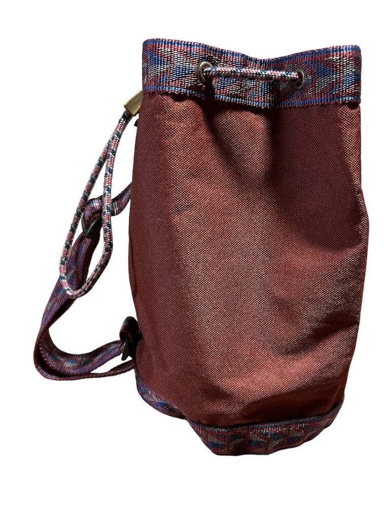 Vintage EKcessories Bucket Purse Handbag Maroon Tribal USA Drawstring.