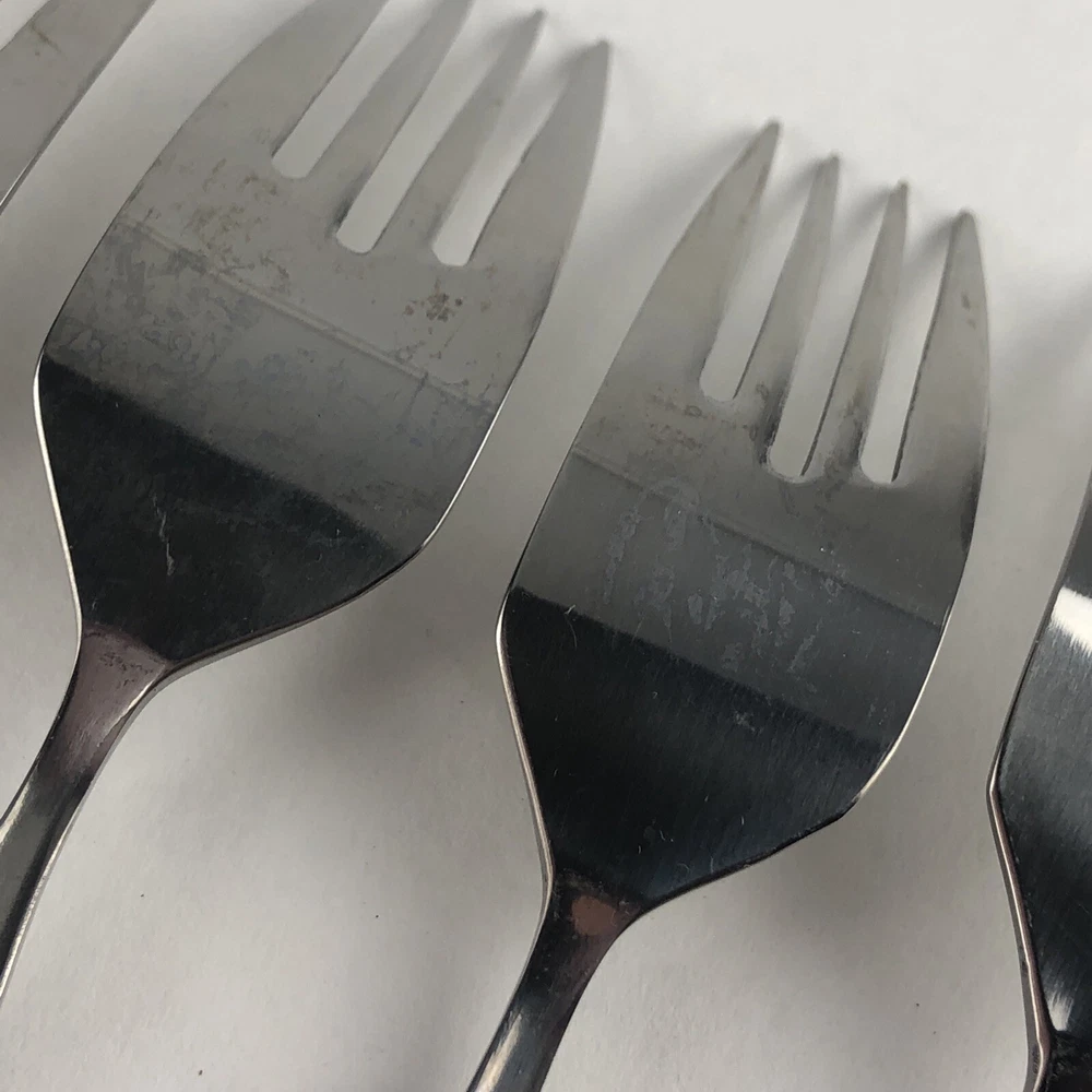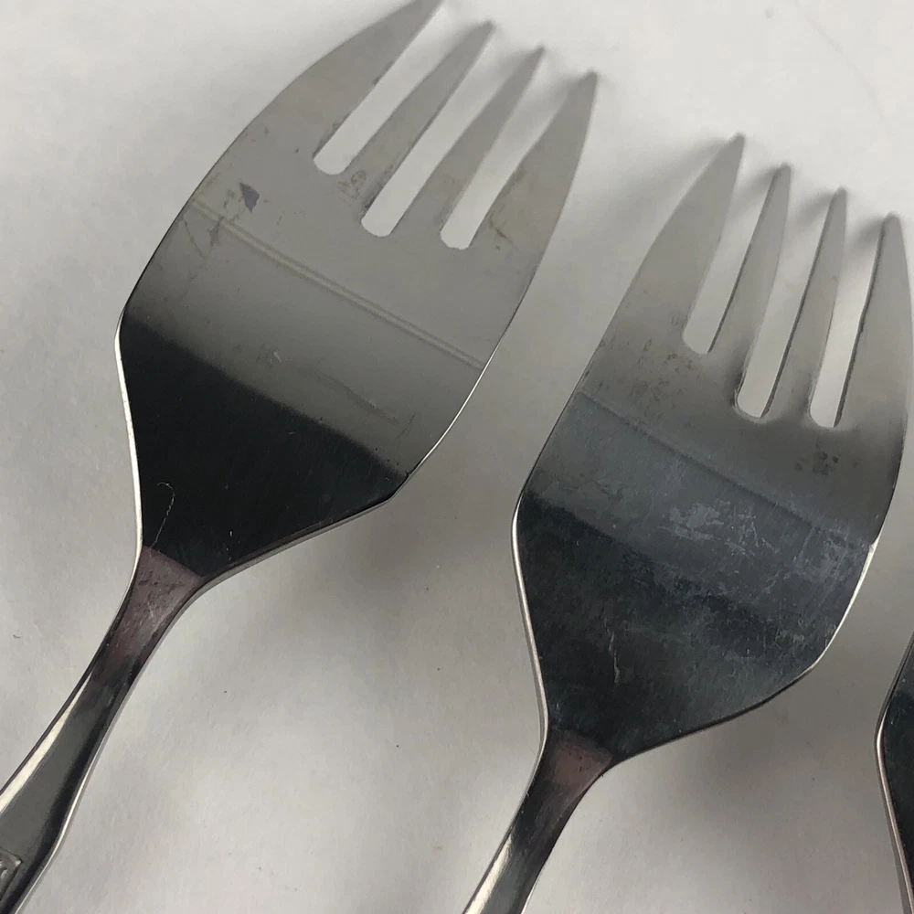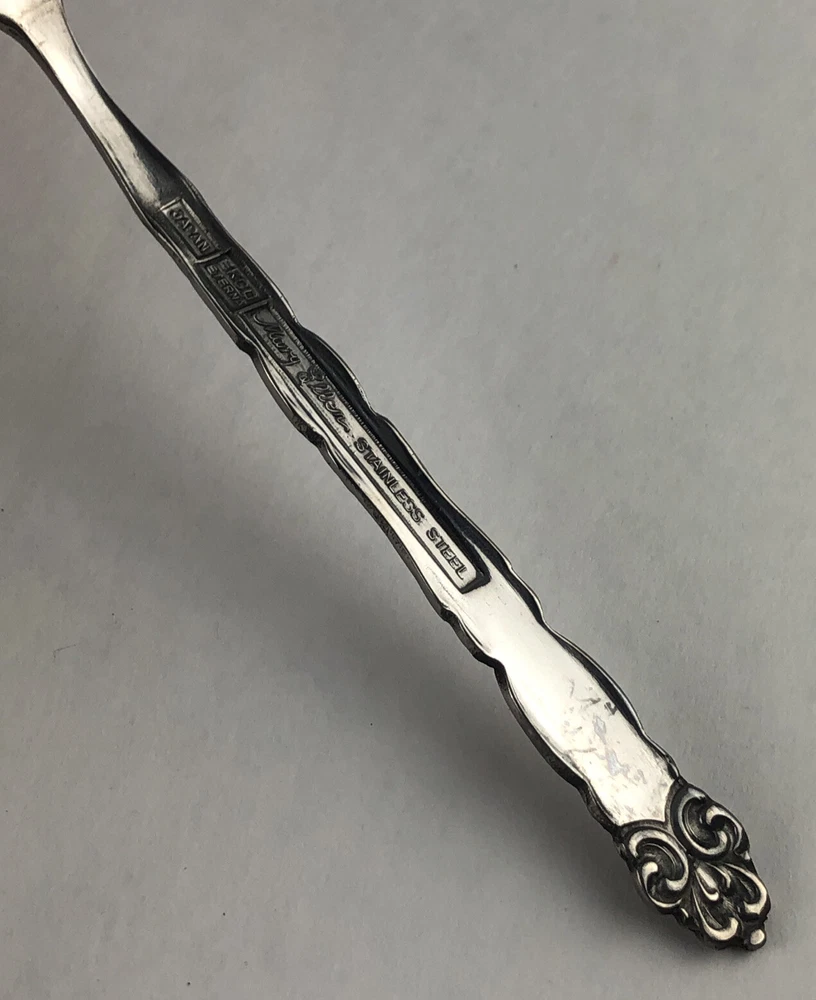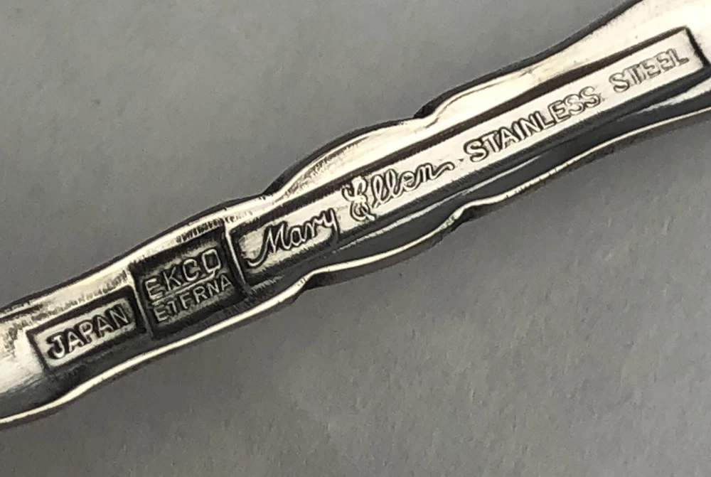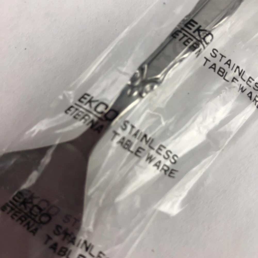 Vintage EKCO ETERNA MARY ELLEN Stainless Flatware 4 SALAD FORKS. Made in Japan. Glossy, will need a light polishing. Please see pictures for details as this is part of my description.