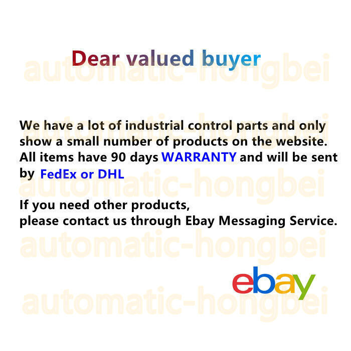 Industrial control, automated supply chain Product Description If you have any questions, please feel free to email us. We have a wide range of industrial automation brands for customers to choose from. Too many products cannot be displayed in the store. If you need a brand and model, you can always email us and we will provide you with a quote. We then upload the product to the store for you to purchase and all of our products are shipped via FEDEX DHL UPS. Our company can also provide you with technical support, I hope we have the opportunity to cooperate! About Payment Policy Shipping Policy Disclaimer Returns Policy About Why Us ? Our specialists will be with you during shopping and after-sell. Professional advise and any technical problem will be provided. We will respond any question within 24-hour normally. Please allow longer time for weekend. Our logistic team will pack your order safely, make sure the item will be arrived perfectly. And then the parcels will be pass to courier. The total dispatched time will be around 3-5 days . We focus on product quality, rather than packaging and marketing, in order to deliver the finest quality of product at a fraction cost. We believe that you would like to pay for the item cost except unnecessary costs. Our product team will keep the products up-to-date , which can allows you to purchase the latest and valuable products from our stores. We believe our Wide Product Range will be your selection. How should I make my payment ? We accept PayPal . Your payment is protected by Buyer Protection . Items will be shipped within 3-5 working days of payment being made. No mailing payment will be accepted. How long is the delivery time ? Total delivery time is split into two parts: Processing and Shipping Processing time It takes normally 1-5 business days** . We will check your order, confirm your payment, verify your address and arrange your shipment during this period of time. Shipping time In general, the delivery time of each international courier is as below: USPS: 5-7 business days in normal. UPS: 3-5 business days in normal. Worldwide Shipment: 5-21 business days in normal. **Reminder: Our warehouse do not process orders during weekend or any public holidays. Therefore, please allow another 1-2 business days to process your weekend orders.** Do you ship to my country ? Yes, we do. Actually, we ship to any countries all over the world (As long as your country is on the earth). Do you provide tracking number ? Sure thing. We will upload the tracking number once the item is dispatched. Here is how you can locate the tracking number: Click My eBay at the top of most eBay pages. You may need to sign in. Click the Purchase History link on the left side of the page. You'll see the tracking number under the item title. Other Shipping Policy We don't responsible for any customs tax and similar fees. All shipping charges are not negotiable. Shipping and handling fee includes all packing, warehouse and distribution cost. How many months warranty do you provide ? 24 months warranty is provided to our products. The length of the warranty depends on the nature of the products. What should I do if the item quality is bad / does not fit ? Normally any quality problems, please return to exchange a brand new one within 14 days or purchase. We will pay for the return postage.Kindly contact our customer support for more details. What should I do if the item is broken or dead on arrival ? For ensuring all the items are in good quality, we will test all products before the packages were sent out. If there are any problems with the item, kindly send us some images of the situation. And we are more than willing to assist you any further. What should I do if I choose to return the item for a full refund or replacement ? Please contact our customer support team before returning the defective item. Return items should include the original packaging and all accessories. Please make sure the item have NO man-made sabotage., otherwise, refund/exchange request will be rejrcted. DO REMEMBER SIGN YOUR RMA# on the front of the package., or your return won't be accepted. We will pay for the shipping cost of resending items as well. Where can I find a RMA ? RMA is Return Merchandise Authorization. Please contact our customer support and explain them your situation. They will try to solve the problem for you and issue you a RMA for returning the item back to us. Disclaimer: Our eBay account sells new and surplus product and develops channels to purchase such product. Our eBay account is not affiliated with nor an authorized distributor or representative of any manufacturer, brand or product listed. All items sold by us are covered under our warranty and not the manufacturer warranty. Designated trademarks, brand names and brands appearing herein are the property of their respective owners. Payment Policy We only accept payment via ebay .Payment Method Shipping Policy 1.US Stock items Shipping Service UPS 3-5 BUSINESS DAYS (weekend and festival not included) from our warehouse in the US,only to US. 2.China Stock items will be shipped by speedPAK / UPS or Airmail post within 5 business days. 3.We are not Responsible for your Customs duty. 4. We don't add taxes, VAT or other hidden charges. You pay us what you see on the invoice, i.e. goods subtotal + shipping cost (not include duties). Please find out as much as you can about your import taxes in your own country before bidding the item. You need to pay for the import duties in case that occurred for certain goods. 5.Items will be shipped to your eBay address. Please make sure it is correct. Disclaimer Disclaimer All brands, logos, and trademarks identified herein are the property of their respective owners and used solely for identification purposes only. We are not affiliated with any of the manufacturers of products we sell. We are not an authorized distributor or dealer of any of the products we sell. We buy and sell all our pr