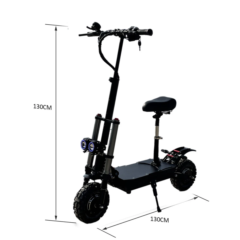 Product Detail: Note:If you have any questions, please contact us before open any case, we promise will solve the problem for you. Thanks! #1(8000W/13in/ D ual Motor) Parameters Standard Specifications 3.Chassis height 135mm 4.Pedal length*width 56*26.5mm 5.Packing size 1510*330*620mm 6.Charging stand (single/dual) double 7.Front and rear shock absorption form(color included):Front hydraulic shock absorber+Rear hydraulic double shock absorber 8.Controller parameters 60V50AH 9.Motor parameters 60V8000W 11.Anti-theft form: key lock 13.Front and rear brake form Front oil brake + rear double large oil 14.brakeback handle has 16.Headlight configuration/horn Dual U7 lights + motorcycle headlights with protective cover + horn 18.Frame material: aluminum alloy + iron 19.Tire size 13 inch road vacuum tire #2(6000W/ 11in /Dual Motor) Features:Lithium Battery / 30000mAh / 60V;Powerful Dual Motors Folding size:1420*2340*500mm Motor power :60V,6000W Battery type:Lithium-ion Battery / 30000mAh / 60V Charging time:7-8 hours (4-5 hours for dual charging) Range (ridingdistance):62 miles / 100 KM Max speed:85km/h (52.8mph) Max load:200 kg / 440 lbs Brake:Hydraulic Disc Brakes Wheel & Tire:11” Inflatable front / rear tires #3(5600W/ 11 in /Dual Motor) Product expansion size: 120*62*111-133cm Product folded size: 130*33*64cm Packing size: 1273*273*515mm Pedal Length*Width: 570*250mm Chassis height: 120mm Charging stand (single/double): double (charging time 6-8 hours) Front and rear shock absorption form: front C-type spring shock absorption + rear spring shock absorption Motor parameters: 60V 2800W * 2 Battery: 60V27AH Anti-theft form: key lock Handlebar (non-adjustable): normal handlebar Front and rear brake form: front and rear oil brake Rear handle: yes Headlight configuration/horn: double U7 lights + motorcycle horn Tail light: turn signal + tail light Marquee: Yes Logo next to the chassis: yes (the same color as the marquee) Frame material: aluminum alloy + iron Tire size: 11 inches off-road tubeless tires Gross weight: 44kg Maximum speed: 70-80KM/H Endurance: 60-80KM Packaging material (inside): carton + pearl cotton Climbing angle: 45-55°#2(8000W/13in/Dual Motor) Product configuration: Material:Full body aluminum alloy Tire size:13 inch (13*5 inch) tubeless tire(Road tires) Load:400KG Motor/speed:13 inch 4000W dual motor(The fastest can reach 85KM/H) brake:Front and rear dual oil disc brakes + EBAS electronic brakes(Letter disc oil brake) Head light:Double U7 headlights protection:Voltage key lock Controller:Dual 60V45A controller Light:Turn signal + brake light + pedal warning light forward Front shock:Long-distance hydraulic shock absorption battery:Domestic 60V43AH Endurance 100-120KM #4(5600W / 11in/ Dual Motor) Motor power: Hall brushless 60V2800W (5600W*2) Electric control power: built-in 60V30A Battery capacity: standard 21700 60V25AH Input voltage: AC100V--250V, 50--60HZ, DC67.2V4A Drive mode: dual drive Maximum load: 200KG (speed 60KM/H) 150KG (speed 90KM/H) Charging time: 10 hours with standard battery Maximum speed: 80----100KM/H Gradeability: 50° Tires: 11-inch tires tubeless off-road #5(3200W/ 11in /Dual Motor) Scooter model: Q7Pro Battery capacity: 52V19A988Wh Motor high-speed motor: 2X1600W Tire type: dual-purpose tire, 10 inches in diameter and 90MM in width. Top speed (km/h): 70km/h. Cruising range (km): 60-70km Applicable terrain: highway, urban cross-country Boot equipment: voltage key lock Headlights: six-lamp bead headlights Charging: Double charging ports and single charger. Service temperature: above-30℃ Maximum climbing degree: 35 Brake type: hydraulic disc brake, brand: Dengfeng Body material: aluminum alloy Body color: main body black Maximum load-bearing capacity of car body (kg): 200kg. Pedal distance from the ground (cm): 17cm Pedal width x length: 22.5CMX53CM Front shock absorption: inverted long-distance hydraulic shock absorption Rear shock absorption: hydraulic shock absorption Controller: 52V28A*2 Packing box size (length, width and height cm): 128 x 30 x 56 cm Vehicle dimensions (mm in length, width and height): the unfolded dimensions are 116*22.5*102-120CM. Folding size (mm in length, width and height): folding size 123*22.5*46CM. Net weight (kg): 30.2kg. Gross weight (kg): 38.5kg. CE: yes FCC: Yes. ROHS: Yes. Other certifications: Yes Motor brand: Gionee Motor model: 10 inches. Rated voltage (V): 52V Rated power (W): 2 * 1600W Battery capacity (ah): 52 v 19 a 988 wh Rated voltage (V): 52V Charging input voltage (v): 58.8 v. Rechargeable times of battery: 1500 times Charging time (h): 4-5h Battery protection board: 60 years. Charger model: 58.8V3A Rated input voltage (V): 100-240 V. Rated output voltage (V): 58.8 V (1V) Rated current (a): 3.0A (0.2A) Controller type: integrated socket controller Working current (a): 28 1A Operating voltage (V): 52V Undervoltage (v): 42v Instrument type (LCD/LED/OLED): LCD. Instrument display parameters: Yes USB output interface: yes Gear: three gears are adjustable. Instruction: Yes. Charger: 58.8V3A charger X1 Seats: one set of seats Front bag: EVA black car 2L waterproof bag Other tools: Hexagon screwdriver set, chain lock, pump, mobile phone bracket. The package includes "vehicle *1, seat *1, charger *1, Hexagon screwdriver set *1, mobile phone bracket *1, 2L black EVA bag #6(2500W/11in / Single Motor) Model Q30 Parameter Standard specification Charging Port (Single/Dual) Dual Front and rear shock absorption form (including color) hydraulic shock absorption + spring shock absorption Motor parameters 48v2500w single motor Battery 48V16AH Anti-theft form key lock handlebar (adjustable) bicycle handlebar Front and rear brake form Disc brake rear handle yes USB Charging Mode (Single/Meter) Large Meter Tire size 11 inch off-road vacuum Gross weight 35kg Maximum speed 55km/h Endurance 45-60KM Packaging material (inside) double-layer carton + pearl cotton Climbing angle 25-35 degrees Tail lights Tail lights + running lights + t
