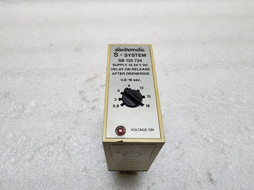We are pleased to offer ELECTROMATIC S-SYSTEM SB125724 DELAY ON RELEASE AFTER DEENERGIS 12-24VDC Product Detail: ELECTROMATIC S-SYSTEM SB125724 DELAY ON RELEASE AFTER DEENERGIS 12-24VDC PART NO: SB 125 724 TYPE: DELAY ON RELEASE AFTER DEENERGIS Shipment processing time: All orders are processed within 1-2 business days. Orders are not shipped or delivered on weekends or holidays. Shipment confirmation & Order tracking: You will receive a Shipment Confirmation email once your order has shipped containing your tracking number(s). The tracking number will be active within 24 hours. Customs, Duties and Taxes: We are not responsible for any customs and taxes applied to your order. All fees imposed during or after shipping are the responsibility of the customer (tariffs, taxes, etc.). Damages: In case of damage or lost of shipment during transit, We will investigate the matter and provide the satisfactory resolution. Returns Policy: We offer return or exchange of ordered item up to 30 days of receipt of goods in subject to certain condition. In case of damaged goods we shall offer the replacement or refund for the ordered item. If you require any more details, request you to send us the direct message through eBay for early resolution. Thanks