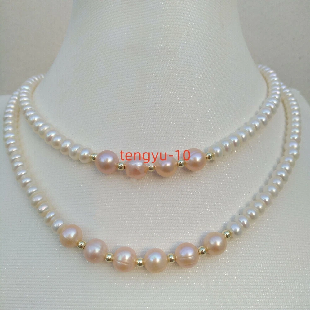 Specification: 17-19inch pearl C olor : WHITE PINK pearl S hape : Metal : as shown 14K YELLOW GOLD FILLED Best and timely service; 100% satisfaction, High quality; competitive price; Note: 1. There will be some minor flaws, but it doesn't affect the beauty of the pearl. If you mind, please don't buy it. 2. Necklaces/bracelets are made by hand, we will tie a knot between every pearl. 3. Pearls are hand-selected and sorted. Due to changes in the size of natural stones, the length may vary by about 0.5 inches. 4. The picture does not show the actual size. Please refer to the specification. 5. The color may be slightly different due to the color calibration of each monitor