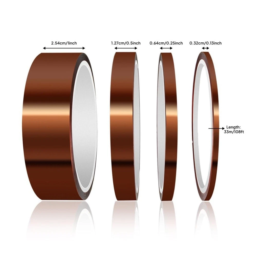 ELEGOO High Temp Tape, 4 Pack Polyimide Temperature Resistant Tape Brown Product Details Is Discontinued By Manufacturer : No Product Dimensions : 0.31 x 0.31 x 3.54 inches; 10.23 ounces Item model number : EL-CP-022 Manufacturer : ELEGOO Brand: ELEGOO Color: Brown Material: Silicone Number of Items: 4 Special Feature: No Residue High Temp Tape, Elegoo 4 Pack Polyimide High Temperature Resistant Tape Multi-Sized Value Bundle 1/8’’, 1/4’’, 1/2’’, 1’’ with Silicone Adhesive for Masking, Soldering, HN Polyimide polymers film exhibits an excellent balance of physical, chemical, and electrical properties over a wide temperature range With silicone adhesive for easy release and leaves no residue after peel away High performance, reliability and durability, with a unique combination of electrical, thermal, chemical and mechanical properties Wide range of applications for masking circuit boards, soldering ,electrical insulation and splicing wires Elegoo 4 Pack High Temp Tape are made from polyimide film with silicone adhesive. They are compatible with a wide temperature range as low as -73°C (-99°F) and as high as 260°C (500°F). For applications where extremes of heat and vibration are the norm, designers rely on it because of its ability to maintain its unique combination of mechanical properties under the harshest of conditions.