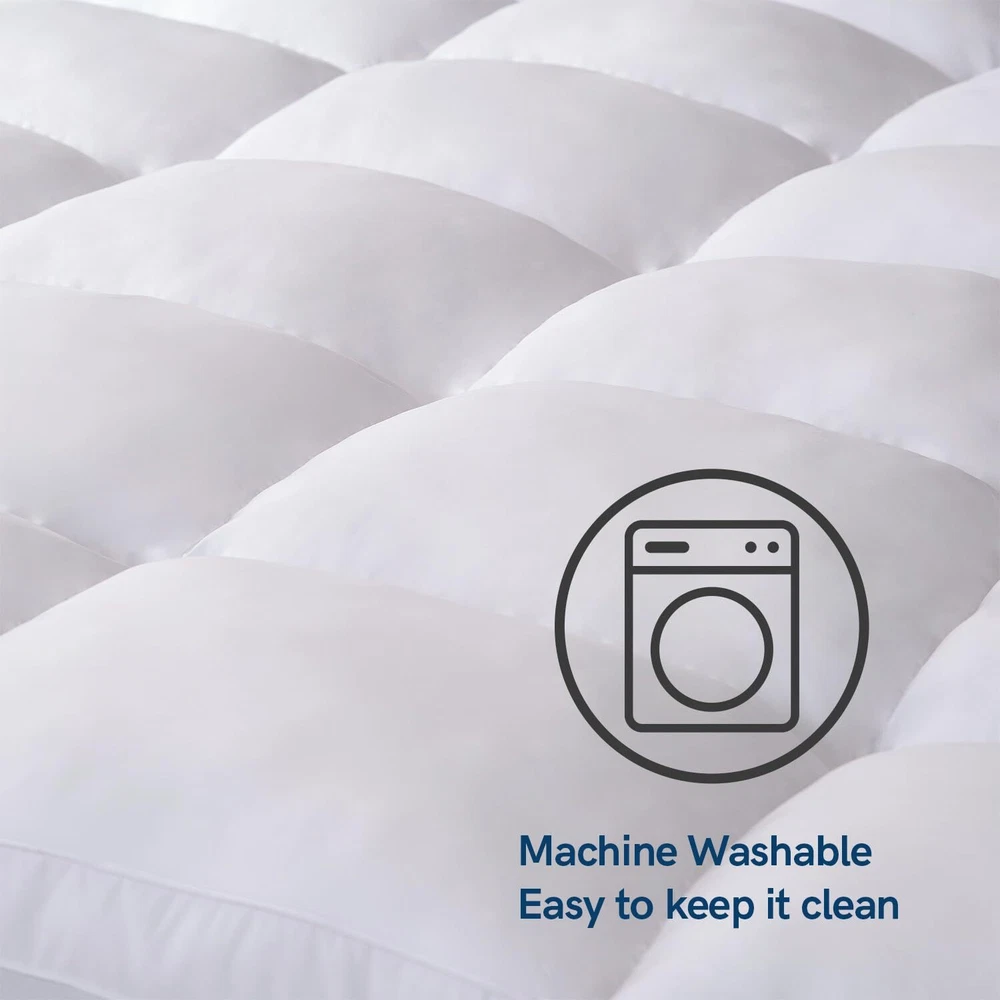 ELEMUSE Twin Mattress Topper for Back Pain, Extra Thick Mattress Pad Cover, Plush Soft Pillowtop with Elastic Deep Pocket, Overfilled Down Alternative Filling 【PREMIUM MATERIAL&SOFT FILLING】Tightly woven and thin brushed microfiber fabric is exceptionally soft, breathable and comfortable. It's also durable, no risk being ripped even with frequently washing. Compared with traditional mattress topper, it's double filled with 3D snow down alternative filling, enough soft, plush and warm. Materials are clean, helps diminish the negative outcomes of a person who has sensetive skin. 【ULTRA THICK&MAXI COMFORT】With overfilled down alternative filling, ELEMUSE mattress topper is extra thick and supportive, offering pressure-relief properties that provide greater support for your hips, shoulders, back, and knees. Down alternative filling retains less body heat than memory foam, causing less uncomfortably warm or hot during the night. This mattress pad can improve your quality of sleep and leave you feeling well rested when morning comes. 【DEEP POCKET&BOX SEWING PATTERN】8"-21" elastic deep pocket will wrap your mattress perfectly so the pillow top will stay in place and you can toss and turn freely during the sleepy nights. Unique box sewing pattern leaves box pockets to hold the filling and keep it evenly distributed. The morden stylish designed bed skirt and sewing pattern add more appealing visual aesthetic to your bedroom. 【MACHINE WASHABLE&EASY CARE】Unlike expensive mattress, if ELEMUSE mattress topper gets dirty and stained, it is allowed to be washed in a large capacity washing machine with cold water, mild detergent and gentle cycle, which helps save huge time and energy over hand washing. It remains fluffy and clean after humble dry at low heat in extra large capacity dryer. 【100% CUSTOMER SATISFACTION】ELEMUSE aims to provide satisfying pre-sales and after-sales service. ELEMUSE service team will always offer immediate answers to customers and fix relevant issues. Here what you'll get is not only superious products but excellent service. Purchase one as gift for yourself or your beloved. All of you are deserve the super comfortable mattress topper. Shipping We offer FREE shipping on all orders! We use a selection of shipping services such as UPS, FedEx, USPS etc. We only ship to the lower 48 states, no APO/FPO addresses or PO Boxes allowed. Local pickups and combined shipping options are not provided at this time. Return You can return a product for up to 30 days from the date you purchased it. Any product you return must be in the same condition you received it and in the original packaging. Please keep the receipt. Payment We accept payment by any of the following methods: PayPal Please pay as soon as possible after winning an auction, as that will allow us to post your item to you sooner! Feedback Customer satisfaction is very important to us. If you have any problem with your order, please contact us and we will do our best to make you satisfied. Contact Us If you have any queries, please contact us via ebay. We usually respond within 24 hours on weekdays. Please visit our eBay store to check out other items for sale! Thank you for shopping at our store.