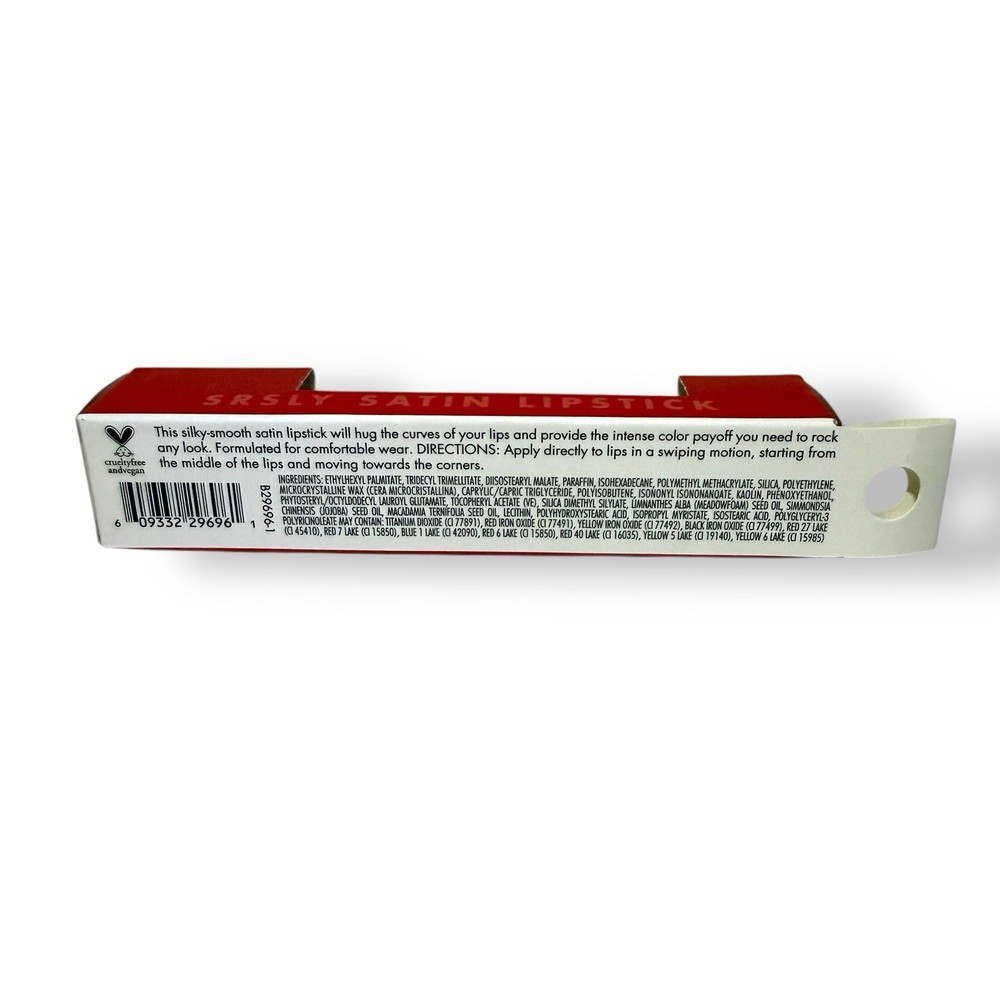 Shade: Pepper Type: Lipstick Volume: .12 oz Effect: Satin Model: SRSLY Satin Lipstick Features: Animal Cruelty-Free, Moisturizing, Vegan Brand: ELF Size: Standard MPN: NA Product Line: ELF Cosmetics Country of Origin: China Period After Opening (PAO): 12M Formulation: Stick