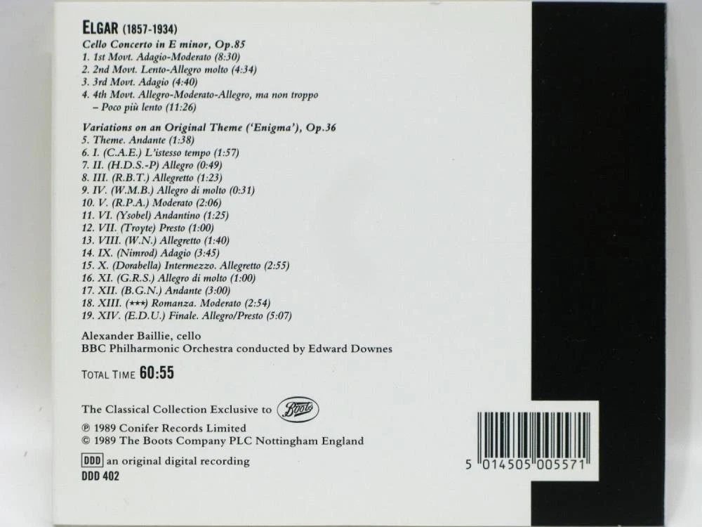 Music Movies / TV Video Games Books 📧 Free UK Shipping 🚀 Same Day Dispatch 5⭐ Customer Service 🐷 Great Value Elgar: Cello Concerto / Enigma Variations £5.45 £5.45 £3.87 Save 29% Artist: ELGAR Artist: Alexander Baillie E A N: 5014505005571 Format: CD Genre: Classical Number Of Discs: 1 Release Date: 1989 Release Title: Elgar: Classical Collection Elgar: Cello Concerto / Enigma Variations We also sell Films & TV Video Games Music Audio Books Editors picks Sit Down Next to Me £9.84 Progress £1.98 Scottish Moods £8.78 Intensive Care £1.98 Encore £1.95 Friday's Child £1.95 For The Many £3.74 Keep On £1.98 IMPORTANT INFORMATION IMAGES We use stock images in all of our listings. Images are for illustrative purposes only. Actual item cover, artwork and / or edition may vary. ITEM CONDITION If the item is listed as used, your item will be previously owned but still in great condition. The disc will play perfectly without interruption. Case, inlay notes and sleeve may show limited signs of wear or may not be included. If the item is listed as new, your item will come brand new and wrapped in original cellophane. REGION CODES All DVDs have embedded region codes, these codes are separated and administrated by geographic location (don’t forget to check our description before purchasing). Region 1: USA & Canada, Bermuda, and US Territories Region 2: Europe, UK Region 3: South-eastern Asia Region 4: Latin America and Australia Region 5: Russia, Asia (non-southeast), and Africa Region 6: China PACKAGING Your order might come packed in a recycled plastic mail bag. Used mail bags can be recycled via soft plastic recycling schemes operated by majority of supermarkets thourghout the UK. INTERNATIONAL ORDERS We would like to advise our international customers, that the UK is now out of the EU single market and that international orders may be subject to duty, VAT, administation or clearance fees imposed by the customs in destination country. MORE Please feel free to contact us for any additional information regarding the item. Powered by