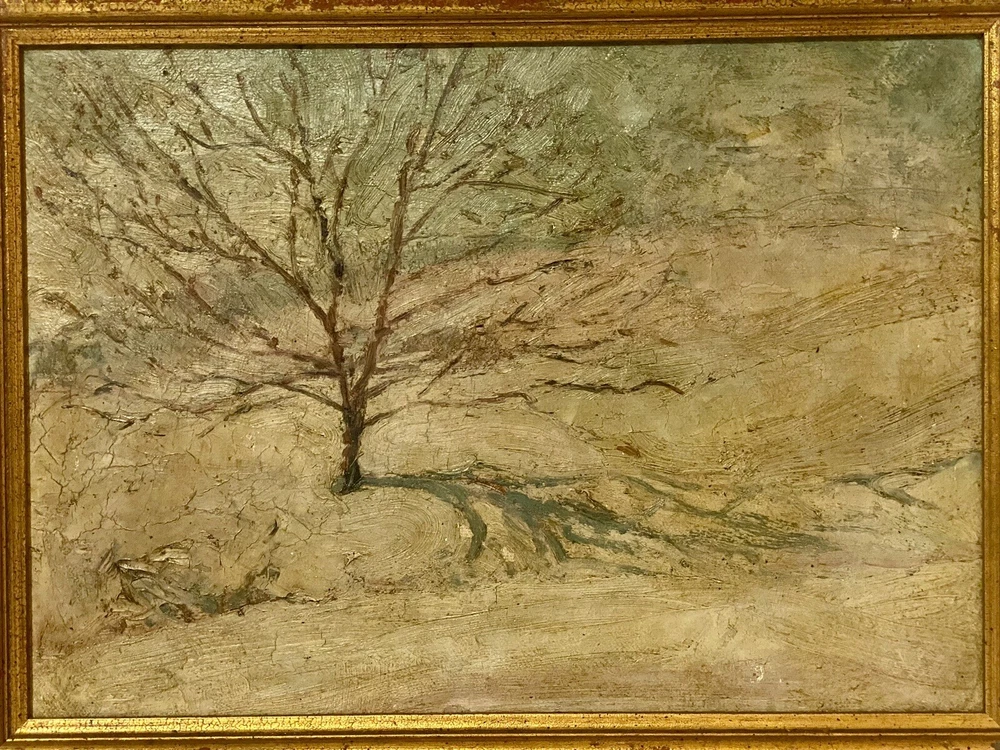 This stunning painting by renowned American artist Elizabeth Freedley Price showcases the beauty of winter in Bucks County, Pennsylvania. The small-sized, original oil on canvas piece is print signed & titled on the verso and comes framed. The landscape subject is depicted in an impressionistic style, with rich colors and texture that make it truly one of a kind. The painting measures 10 inches in height and 14 inches in width with a total size including the frame of 12 5/8 inches in height by 16 5/8 inches in width and is a handmade original production technique. This item is perfect for art enthusiasts and collectors alike who appreciate the timeless beauty of impressionism.