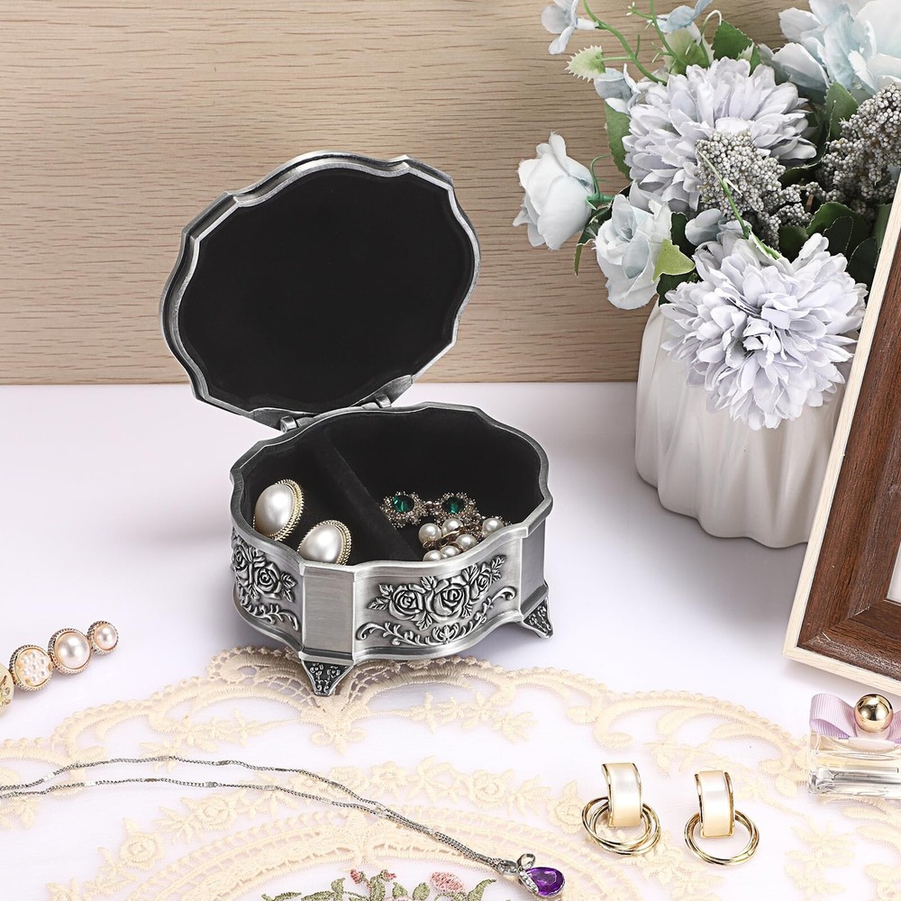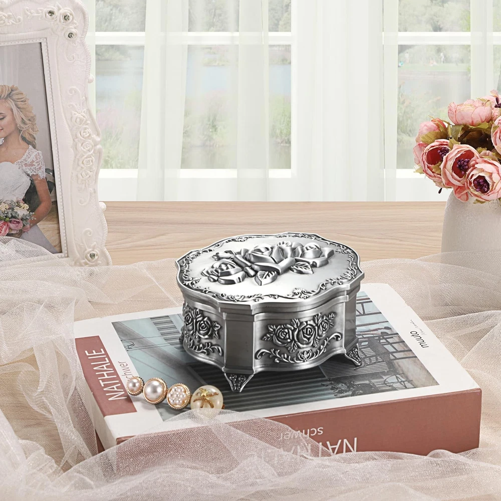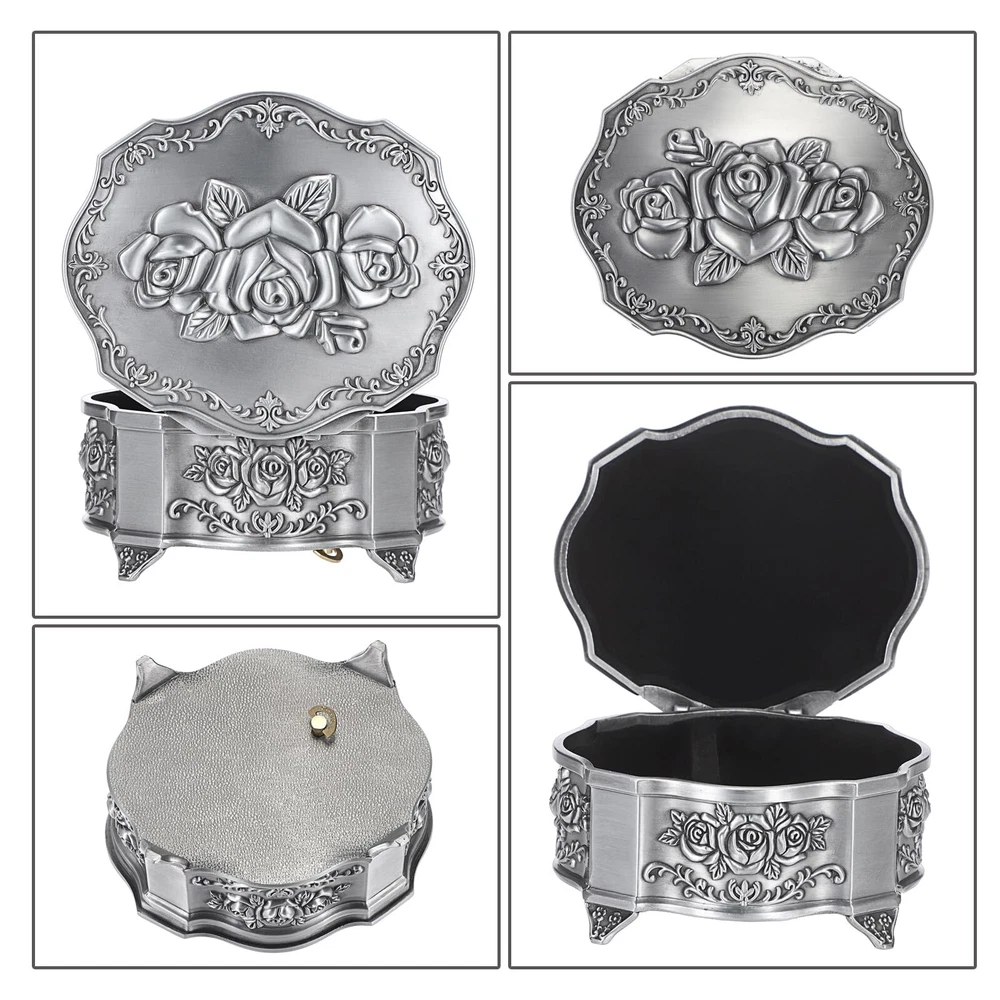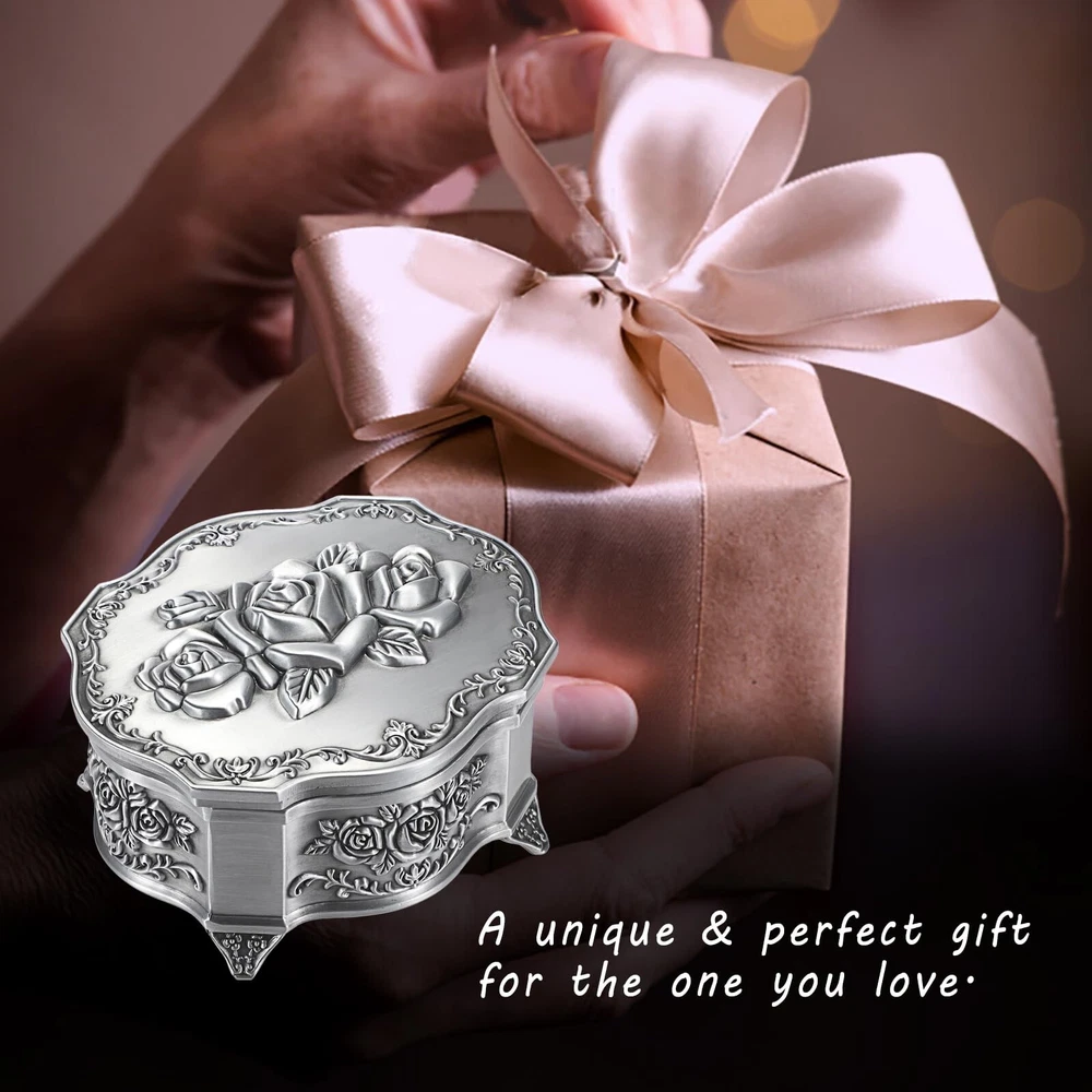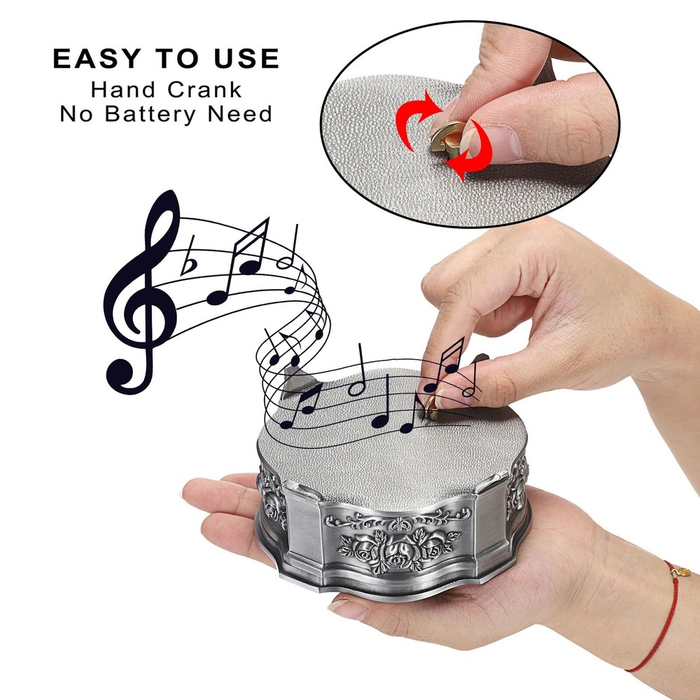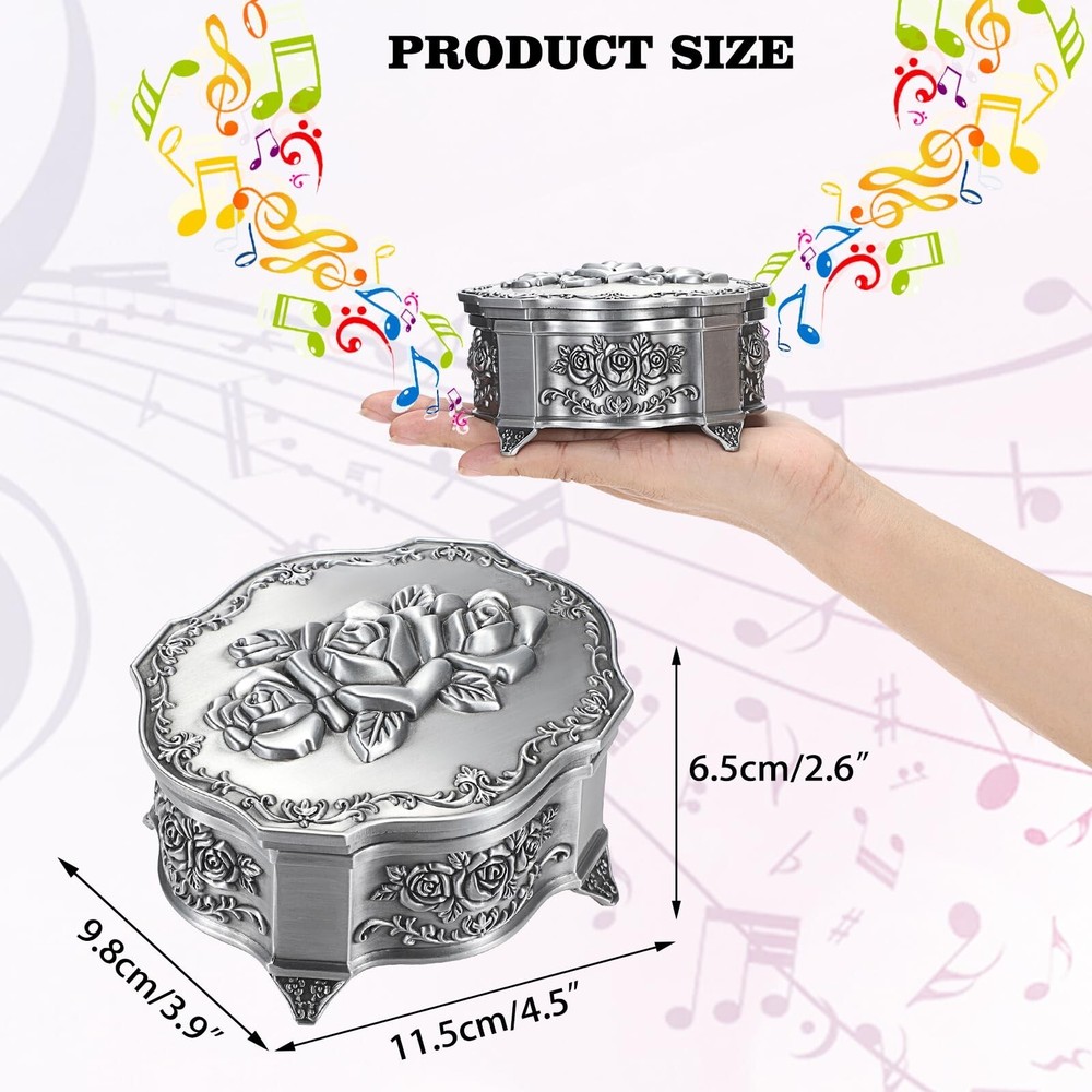 ELLDOO Vintage Music Box, Silver Metal Musical Jewelry Box Keepsake Box, Smal...