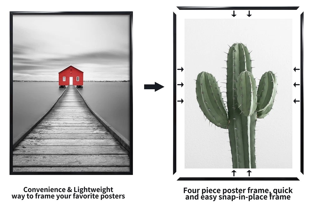 【UNIQUE DESIGN】: This 20x24 frame with aesthetic and modern design is ideal for displaying any of your favorite prints, pictures or photos in your home, office, photo studio, gallery, college, etc. (notice: If your poster or picture is very thin, please secure the backboard and frame with masking tape .) 【SIZES】: Each 20 x 24 picture frame will suit for one 20x24 inch poster or photograph. A set of 3 photo frames of the same size can bring a variety of possibilities to your decorative style. 【LIGHTWEIGHT & STURDY】: This black 20x24 poster frame uses four portable rails and Sturdy MDF backboard to make each frame lighter to handle and easier to use. 【EASY HANGING】: No worries about assembly and hanging. The 4-piece rails could be installed easily by sliding them together, and the preinstalled hanging hardware could be more convenience for you to put them on the wall. 【PACKAGING & GIFT】: Each set of 3 pack 20 x 24 frame was packaged well in a thick box for safety. It will be an excellent present for your loved ones. To ensure that the frames will not be damaged or scratched in transit, our packaging will not include nails for wall mounting.