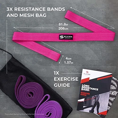 Elvire is committed to driving results by investing in innovate sports equipment for everyday use. We sell a range resistance bands for women, resistance band set, resistance bands long, exercise resistance bands. So, whether you are looking for resistance bands set women. long resistance bands, training bands, resistant bands we have you covered. We are constantly looking for ways to develop our gym bands resistance, workout bands and resistance bands men. Our products cater for a range of different activities – yoga, workouts in the home or gym, tennis, golf, rugby CrossFit. Our products will enable you to be the best. Push you past your personal best Get More from Your Workouts: Elvire pull up bands exercise band set will seriously ramp up your muscle-building gains. A resistance band women & men can use for upper & lower body resistance training & yoga. Cloth resistance bands for pull up assist. Designed by Fitness Experts: Durable & comfortable long bands for working out with anti-slip lining, so you can use the resistance band for pull up assistance. Each long resistance band keeps its shape & elasticity as they are fabric resistance bands Customise Your Workout: Our long loop resistance bands come in 3 grades. Light (9-13.5kg) Heavy (13.5-18kg) & X-Heavy (18-23kg) so you can progress as you use our long workout bands. A versatile fabric exercise band are body bands for working out. Work Out Anywhere: Pull up bands resistance bands long can neatly fit in a gym bag for training on the go. Our cotton resistance bands exercise loops come with a free travel bag & will become your best gym accessory. The ideal long resistance bands. Buy with Confidence: Scientifically proven to work. Exercise bands resistance for women or men are not only easy to use & store but by using Elvire workout bands for just 10 minutes per day for 30 days you will see positive results