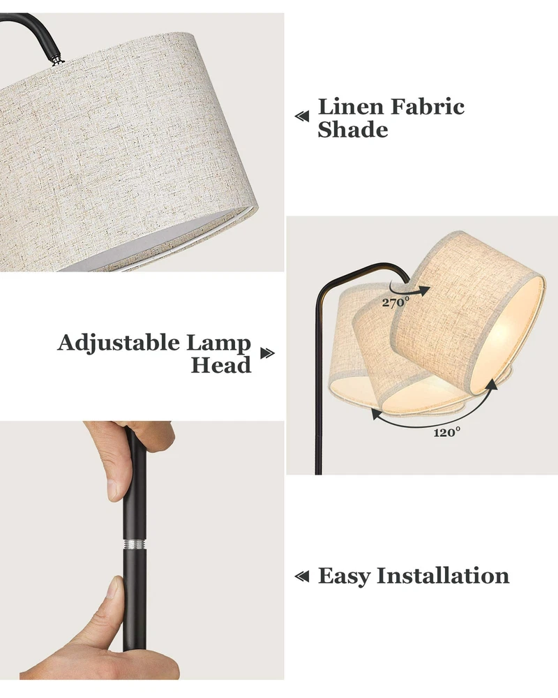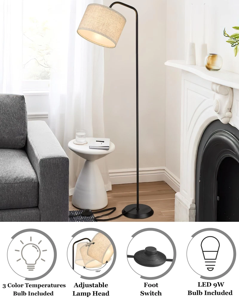 ELYONA Floor Lamp for Living Room with 3 Color Temperatures, Modern Standing lamp with Beige Linen Adjustable Hanging lampshade, Tall Pole Reading Lamp with 9W LED Bulb for Bedroom, Office, Black đăETL Listed & 3 Color Temperatures LED Bulb IncludedăELYONA modern floor lamp includes a 9 watt,800 lumen, LED E26 bulb.This arc floor lamps bulb has 3-color temperatures that can be adjusted:3000K/4000K/5000K. Long lifespan 30, 000 hours lifetime of the bulb can save your money greatly,provide a gentle ambient brightness to create a comfortable environment and cozy for your eyes.â„( pls assure the replace bulb is less than 60 WattsïŒ đăHigh Density Adjustable Rotatable Nature Linen ShadeăThe tall lamp adopts a rotating lamp head,can be rotated up to 270°horizontally or 120°vertically, It can be focused on any area you want to read, study, and work or rest. We use high-quality primary color linen with tight texture, Water&oil-resistant nature linen shade, making the light more comfortable. đă 6.6 lb Sturdy Safe Heavy Base ăThis floor lamp is about 64 inches high , Passed 15 degree tilt test. With a heavier base that keeps it stable and won't tip over easily. 6.6 lb weighted metal base which is not flimsy, heavy enough make sure children and pets' safety when they are playing in the room. đăClassic Beige Designă Black reading standing lamp with beige linen shade which is classic will never be outdate. The height of floor lamp is 64 inches which is the most proper height to offer soft lighting and create a cozy and relaxed atmosphere when you lie on the sofa or sit on a chair, perfect for reading, work, or rest. It easy to match with a range of decor styles including modern, industrial space, farmhouse, nordic,japanese etc. Perfect for living room, bedroom,office, hotel. đăEasy Installation & ON/OFF Foot Switchă No need any tools only takes about 10 minutes, you can finish this standing accent floor lamp, Convenient footswitch allows you to easily turn the floor lamp on or off without having to bend down. We provide a 1-year warranty, if you have any questions, please feel free to contact usïŒwe will respond within 24 hours to provide the most satisfactory solutions and services. Shipping We offer FREE shipping on all orders! We ship within Three business days of payment, usually sooner. We use a selection of shipping services such as UPS, FedEx, USPS etc. We only ship to the lower 48 states, no APO/FPO addresses or PO Boxes allowed. Local pickups and combined shipping options are not provided at this time. Return You can return a product for up to 30 days from the date you purchased it. Any product you return must be in the same condition you received it and in the original packaging. Please keep the receipt. Payment We accept payment by any of the following methods: PayPal Please pay as soon as possible after winning an auction, as that will allow us to post your item to you sooner! Feedback Customer satisfaction is very important to us. If you have any problem with your order, please contact us and we will do our best to make you satisfied. Contact Us If you have any queries, please contact us via ebay. We usually respond within 24 hours on weekdays. Please visit our eBay store to check out other items for sale! Thank you for shopping at our store.