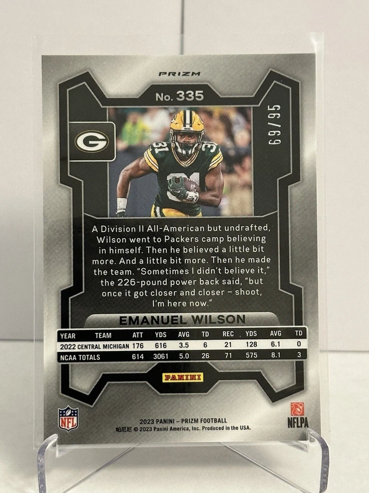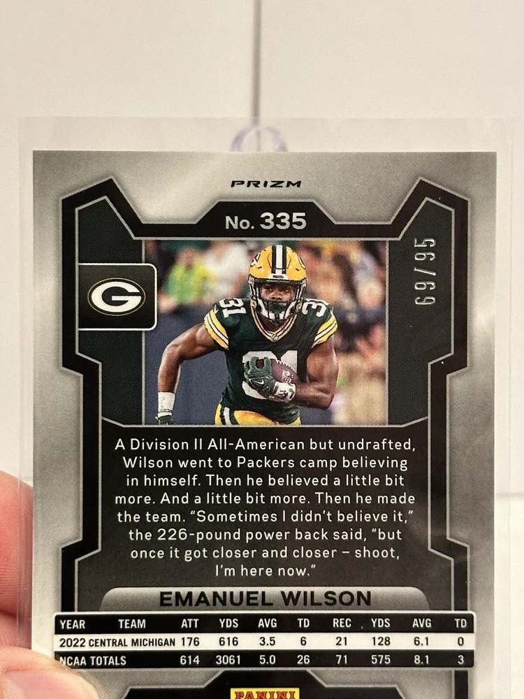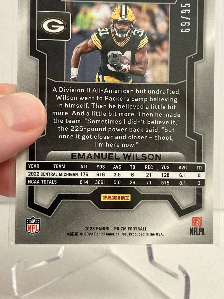 EMANUEL WILSON 2023 PANINI PRIZM ROOKIE NO HUDDLE BLUE RC 69/95. Condition is Ungraded. Shipped with eBay Standard Envelope for Eligible Items up to $20.
