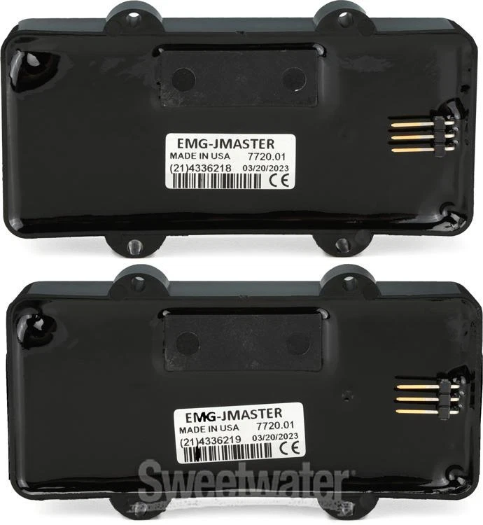 The Single-coil Sound of the Future Inspired by a surfy single-coil from the golden era of guitar building, EMG JMaster pickups blend old-school passive pickup design with cutting-edge modern active electronics! This unique addition to EMG’s Retro Active series starts with a soapbar-style stacked-coil design, sporting Alnico V magnets for a rich, balanced, and full-range tone across all six strings. Next, a custom EMG preamp — specially designed to retain this pickup’s vintage-style character — is placed onto the pickup to deliver all the benefits of a modern active preamp design but with an old-school feel and response. It’s the best of both modern and vintage in a single stunning single-coil design!EMG solderless wiring harness for easy installation Sweetwater guitarists find EMG JMaster pickups are an excellent addition to any 6-string, but if you’re reluctant to break out the soldering iron, have no fear: this pickup set includes EMG’s solderless Sweetwater is an Authorized EMG Dealer Genuine New Item Sweetwater's 2-year warranty EMG JMaster Guitar Pickup Set - Black Stacked-coil Pickup Set with Built-in Preamp, Alnico 5 Magnets, and Solderless Installation Kit - Black The Single-coil Sound of the Future Inspired by a surfy single-coil from the golden era of guitar building, EMG JMaster pickups blend old-school passive pickup design with cutting-edge modern active electronics! This unique addition to EMG’s Retro Active series starts with a soapbar-style stacked-coil design, sporting Alnico V magnets for a rich, balanced, and full-range tone across all six strings. Next, a custom EMG preamp — specially designed to retain this pickup’s vintage-style character — is placed onto the pickup to deliver all the benefits of a modern active preamp design but with an old-school feel and response. It’s the best of both modern and vintage in a single stunning single-coil design! EMG solderless wiring harness for easy installation Sweetwater guitarists find EMG JMaster pickups are an excellent addition to any 6-string, but if you’re reluctant to break out the soldering iron, have no fear: this pickup set includes EMG’s solderless installation kit to make modification a breeze. The EMG solderless installation kit includes everything you need to swap out your guitar’s pickups, with a master volume, a master tone, and quick-connect components that eliminate soldering entirely. EMG JMaster Guitar Pickup Set Features: Inspired by the feel and response of a famous wide-bodied single-coil pickup Alnico V magnets and wide stacked coils produce a rich, full, and balanced single-coil tone Combines the best qualities of a preamp design with vintage-inspired tone Includes an EMG solderless wiring kit with master volume and master tone for effortless installation Specification Detail Type Set: Single-coil Active/Passive Active Configuration SS Set Magnet Material Alnico V Number of Conductors 2 wire plus battery DC Resistance 3.16K Connectivity Solderless Number of Strings 6 Covering Covered Color Black Format Jazzmaster, Stacked Coil RETURN INFORMATION We want you to be completely happy with your purchase from Sweetwater. If you are not satisfied with your product, you may return it for a refund of the purchase price within 30 days. If your purchase was eligible for Free Shipping, the shipping cost will be deducted from your credit or refund. Returns must be in the complete and original packaging with all accessories and complete documentation (Owner's Manual, warranty card, quick start guides, etc.), show no signs of wear or use, and include a Return Authorization number or be subject to a restocking fee.