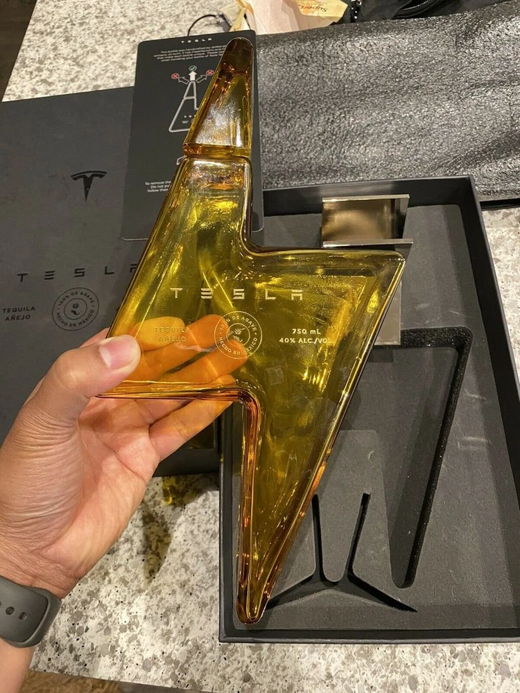 ️EMPTY TESLA TEQUILA BOTTLE + STAND + BOX LIMITED IN HAND FAST SHIP Elon Musk IT